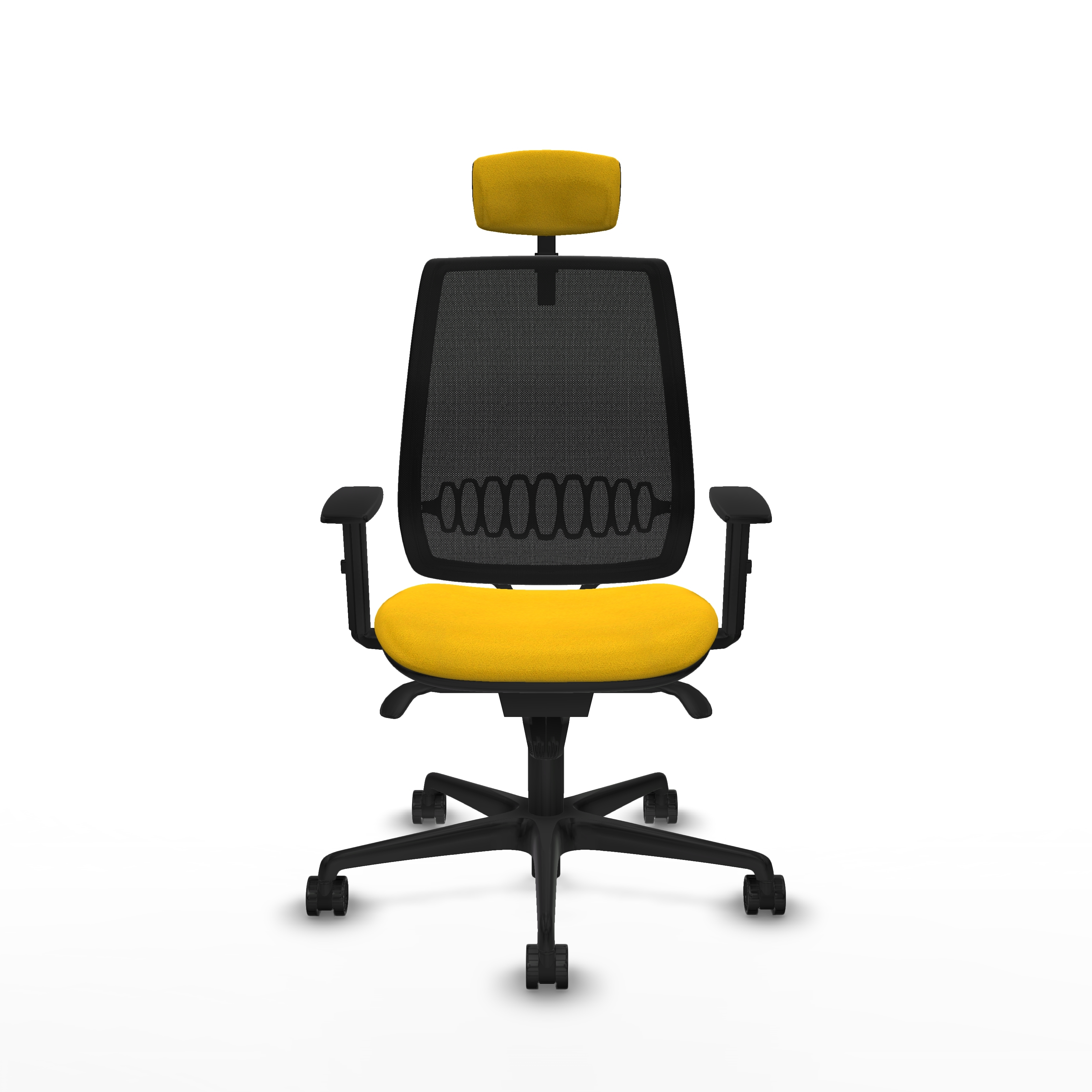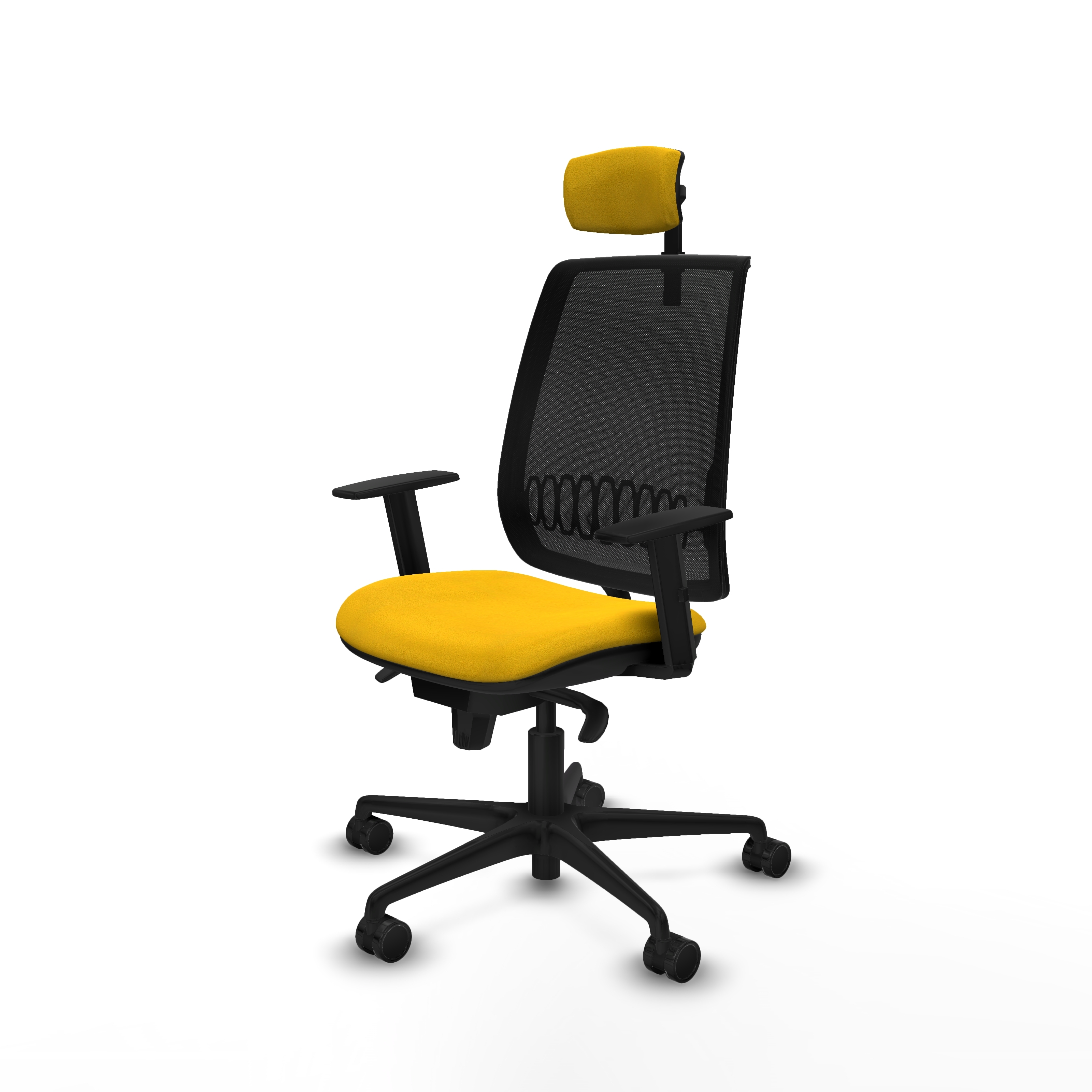 Alares sincro malla negra bali amarillo brazos 1D base nailon cabecero 2D ruedas 65 mm nailon