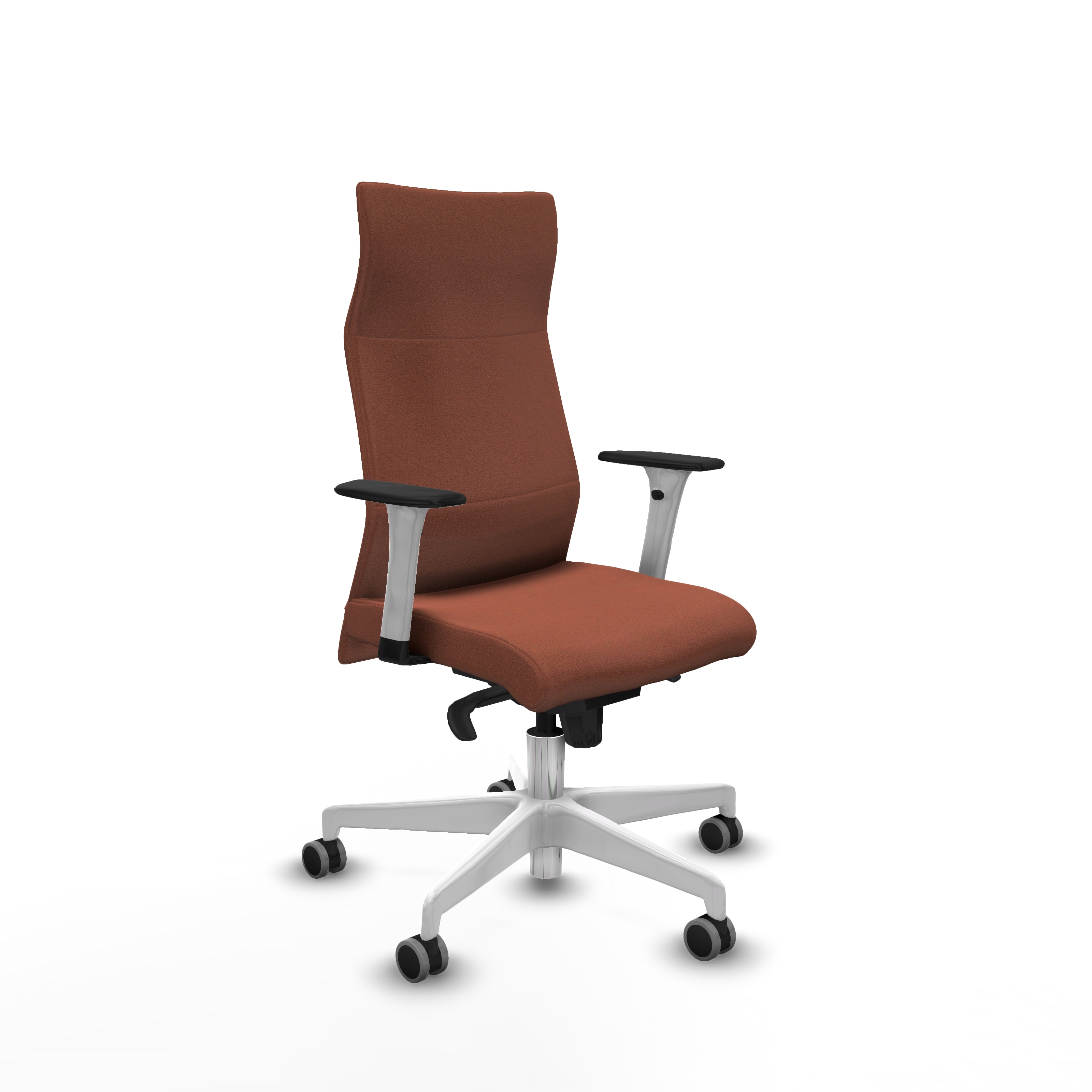 El acabado en tela marrón no solo aporta elegancia, sino que también es fácil de mantener. La espuma de corte con una densidad de 60 mm y 25 Kg/m3 garantiza un confort óptimo, adaptándose a la forma del cuerpo y reduciendo la fatiga. Además, las ruedas de 65 mm de nailon permiten un desplazamiento suave y silencioso, facilitando el movimiento en la oficina.