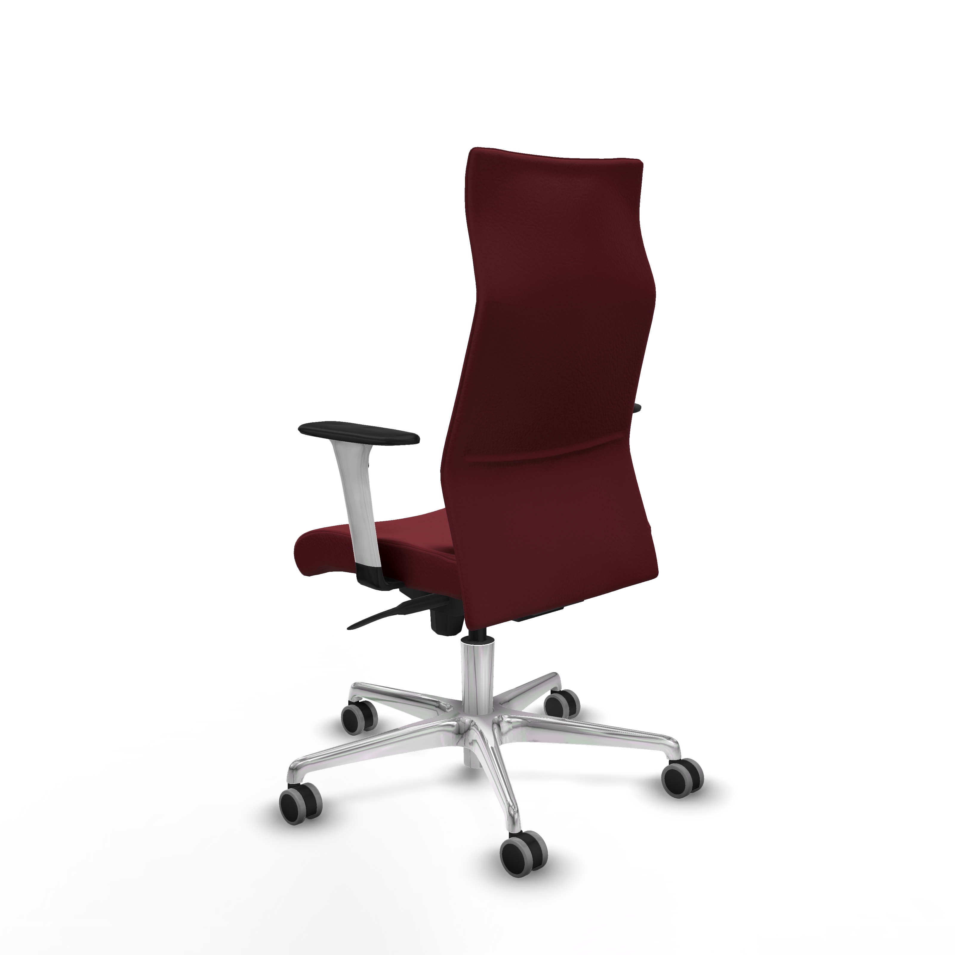 El respaldo fijo asegura una postura correcta, mientras que su acabado en similpiel no solo le da un toque elegante, sino que también es fácil de limpiar y mantener. Disponible en un atractivo color granate, esta silla se integra perfectamente en cualquier oficina moderna.