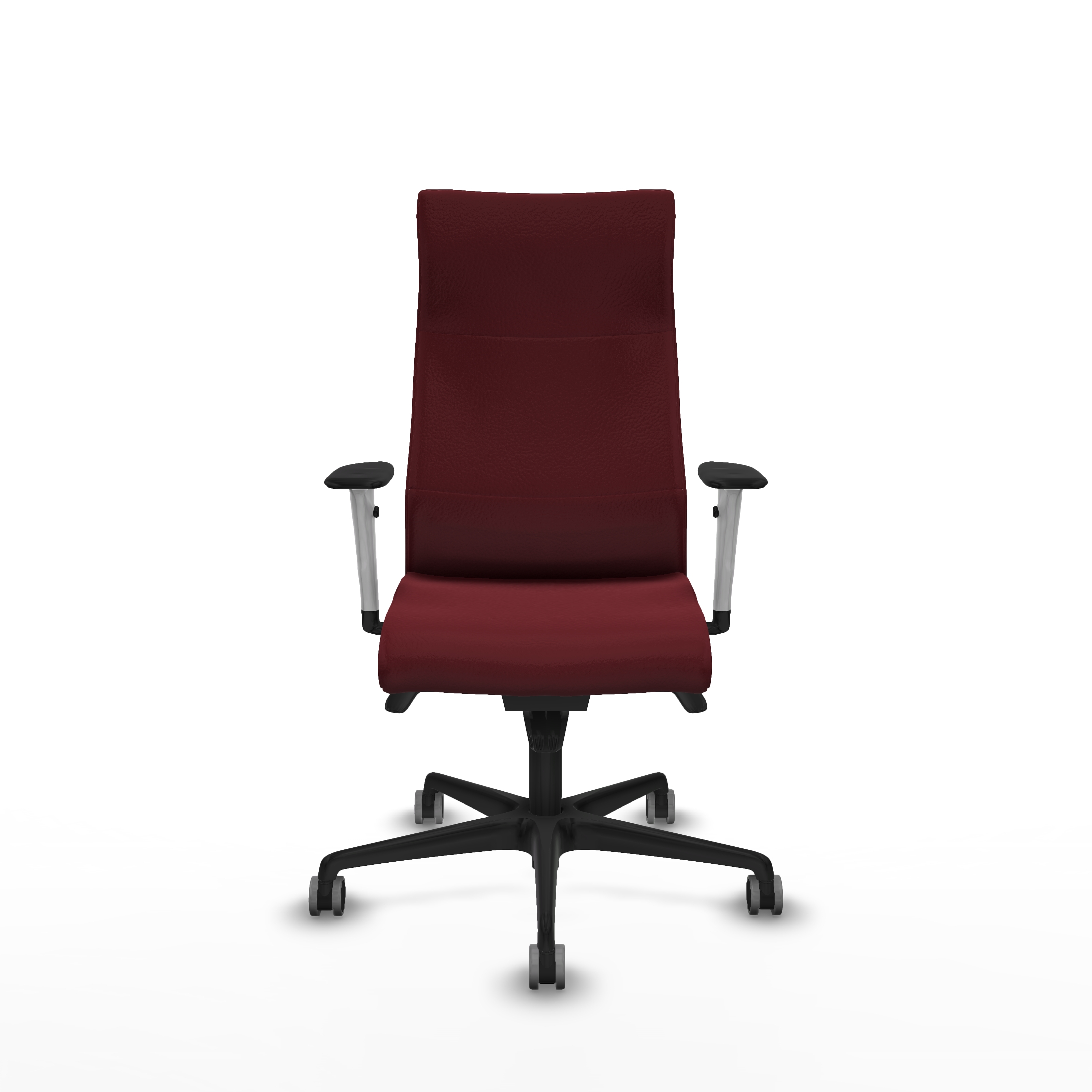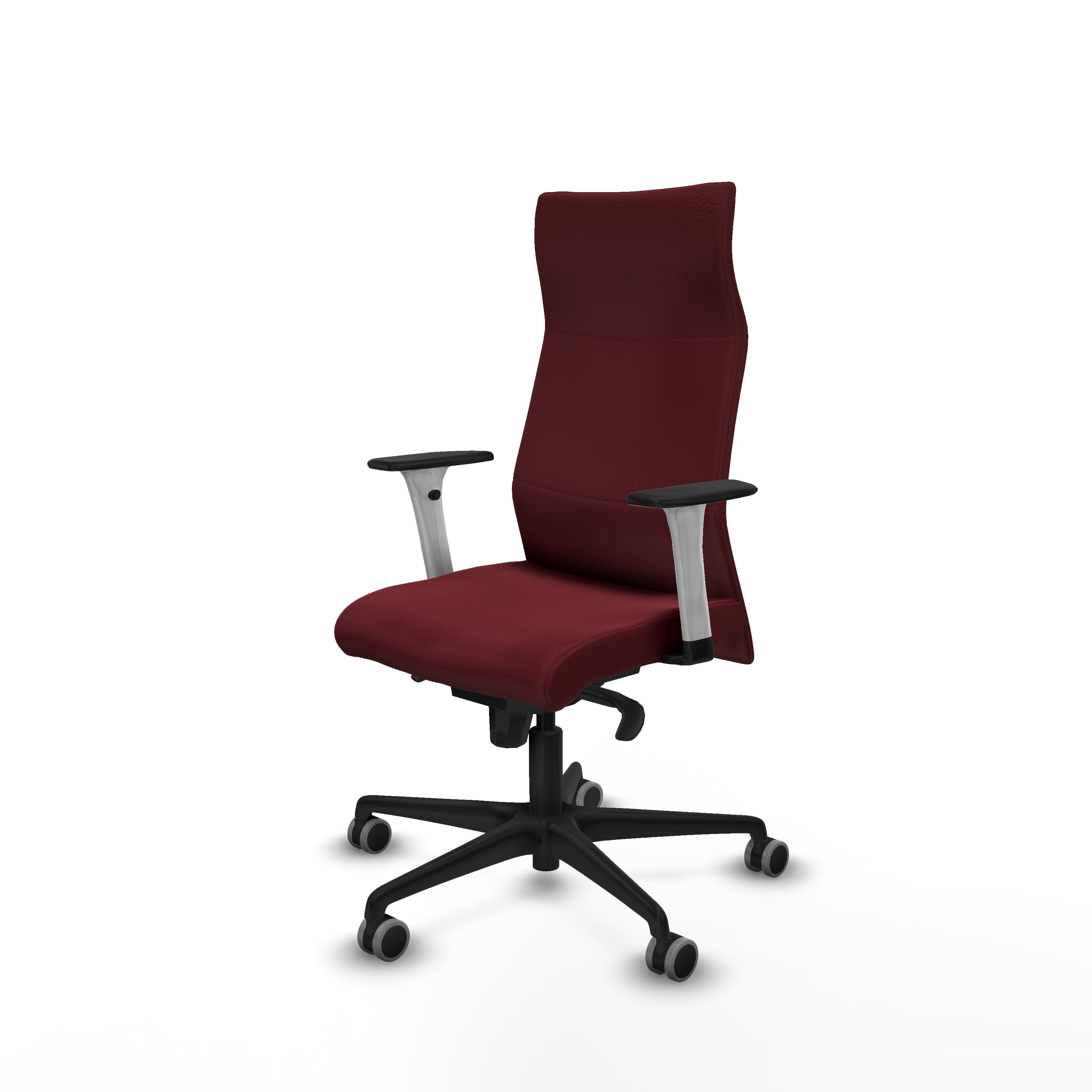 El respaldo fijo de la silla garantiza una postura adecuada, mientras que su acabado en similpiel no solo es elegante, sino también fácil de limpiar. Disponible en un atractivo color granate, esta silla añade un toque de diseño a cualquier despacho.