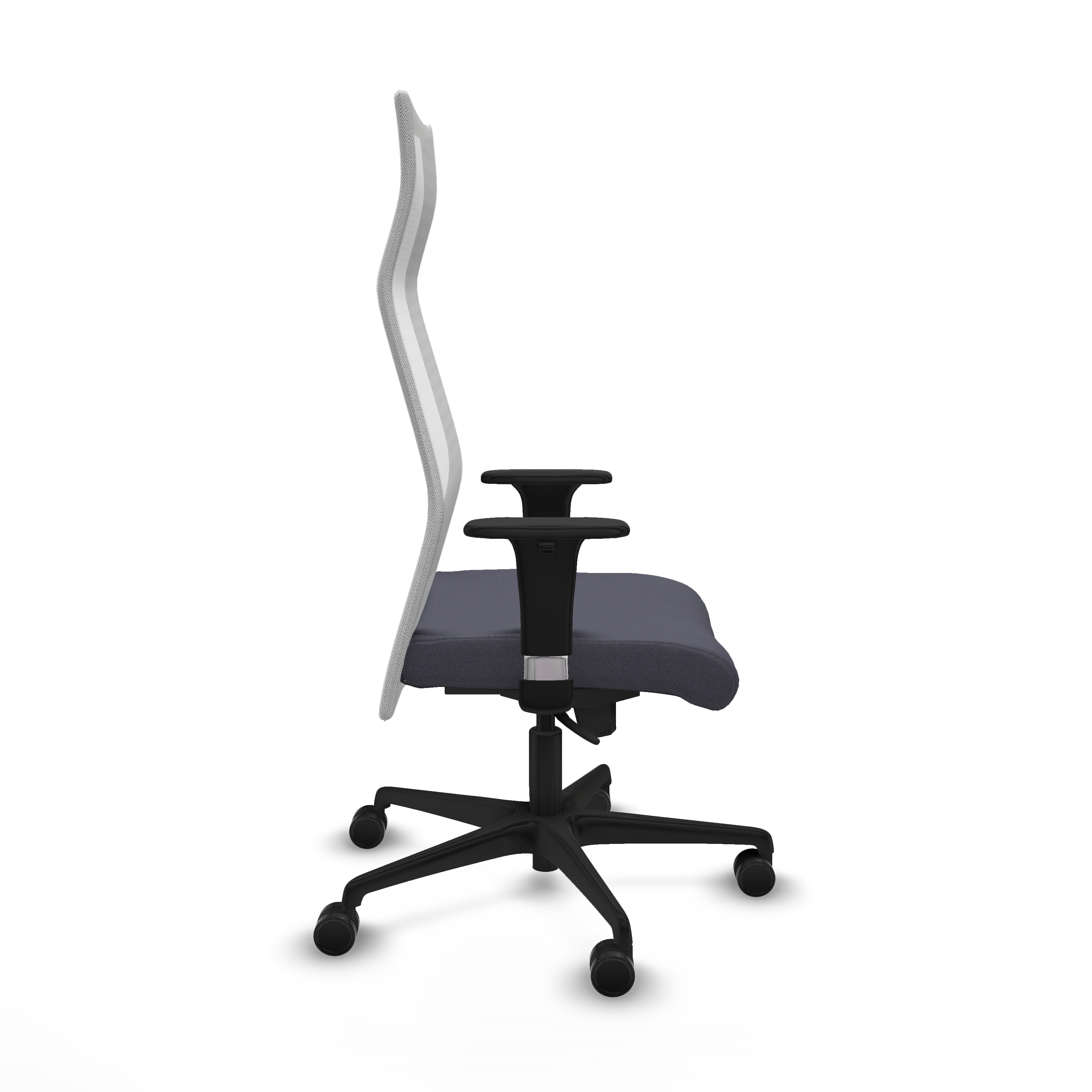 El mecanismo permite la regulación de la inclinación del respaldo y asiento con fijación en 5 puntos, además de ajuste en la altura del asiento, que varía entre 46 y 55 cm, adaptándose a diferentes usuarios. Los brazos 1D son ajustables en altura, desde 66 hasta 73 cm, aportando mayor ergonomía.