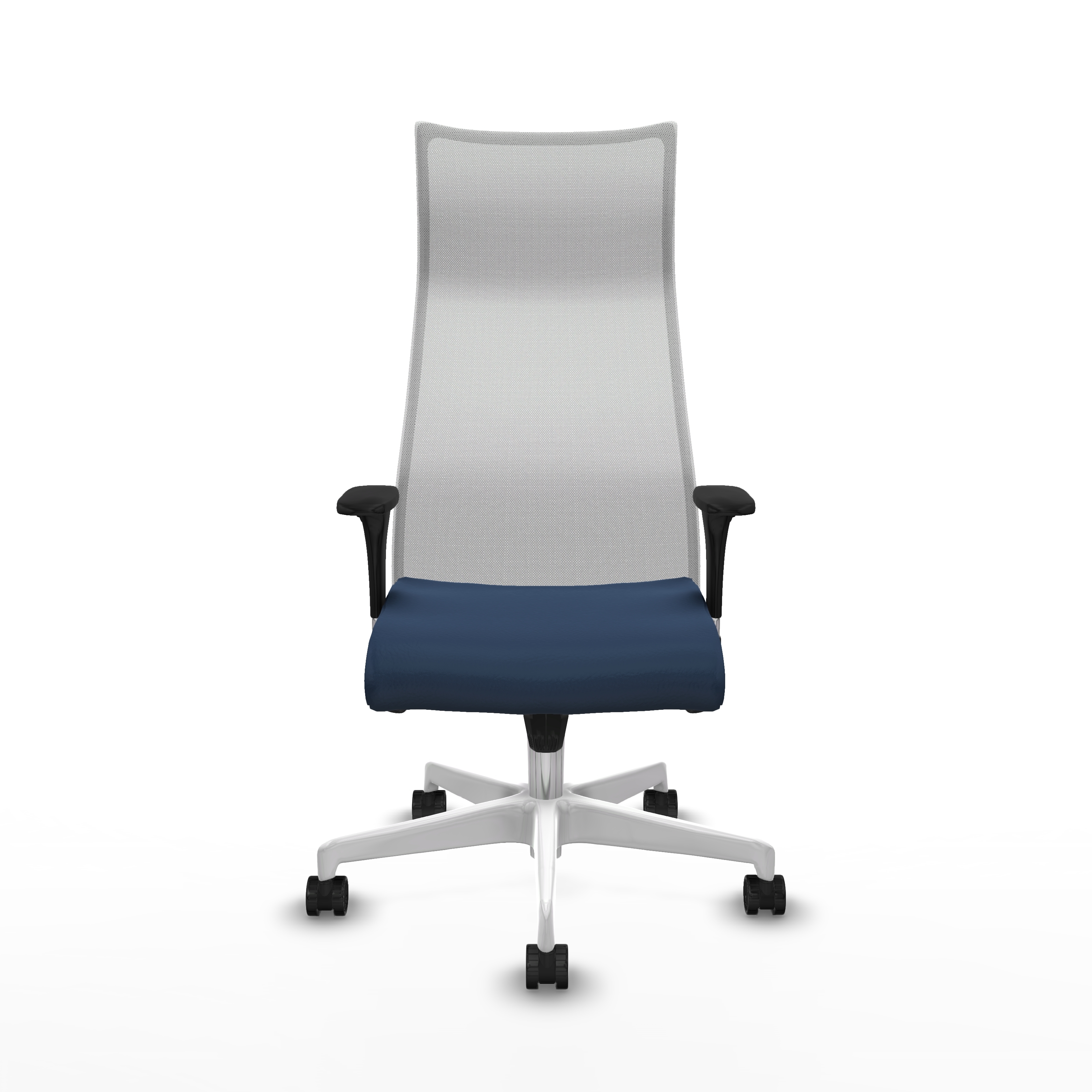 Albacete malla sincro malla blanca similpiel azul marino brazos 1D base blanca ruedas 65 mm nailon