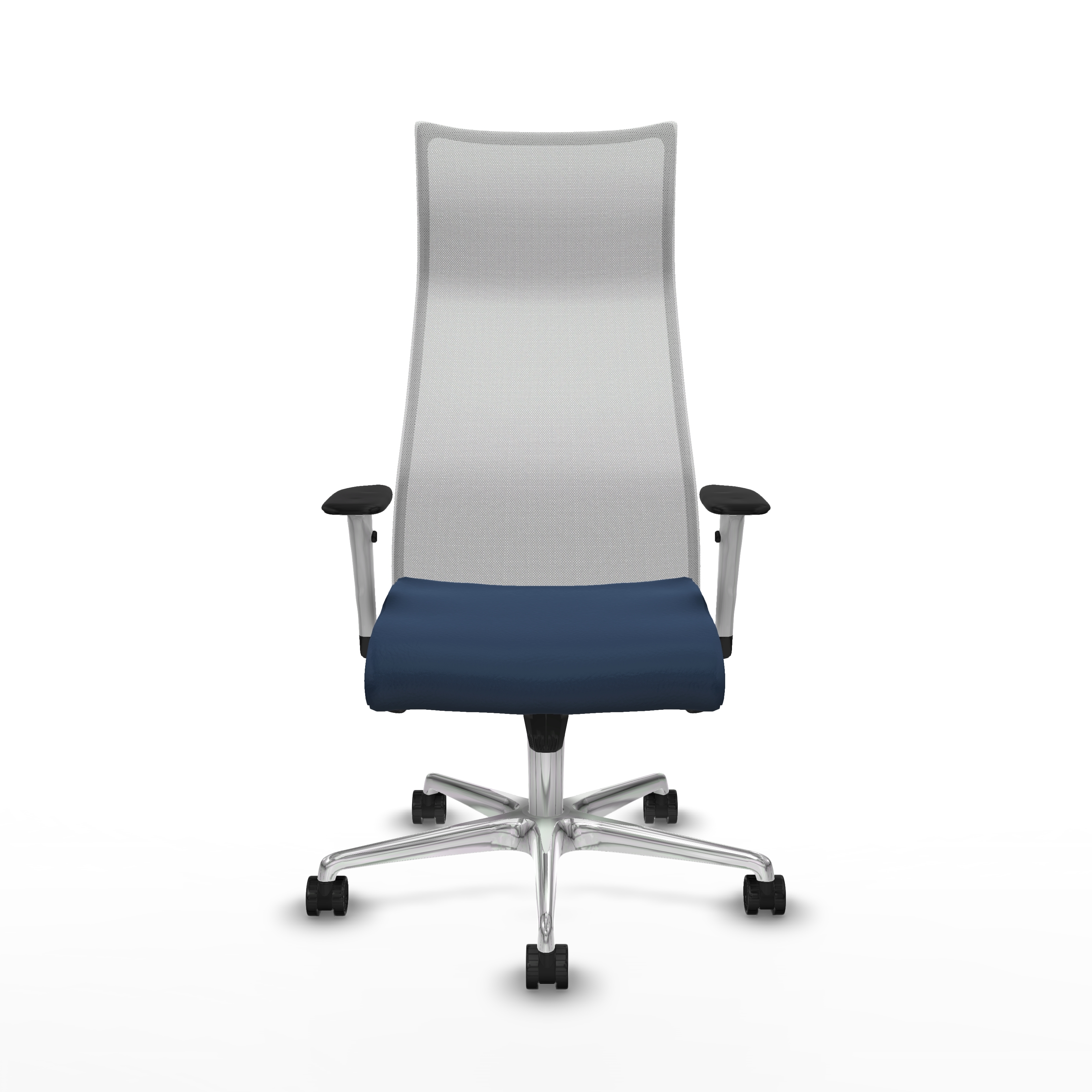 Albacete malla sincro malla blanca similpiel azul marino brazos blancos base aluminio ruedas 65 mm nailon