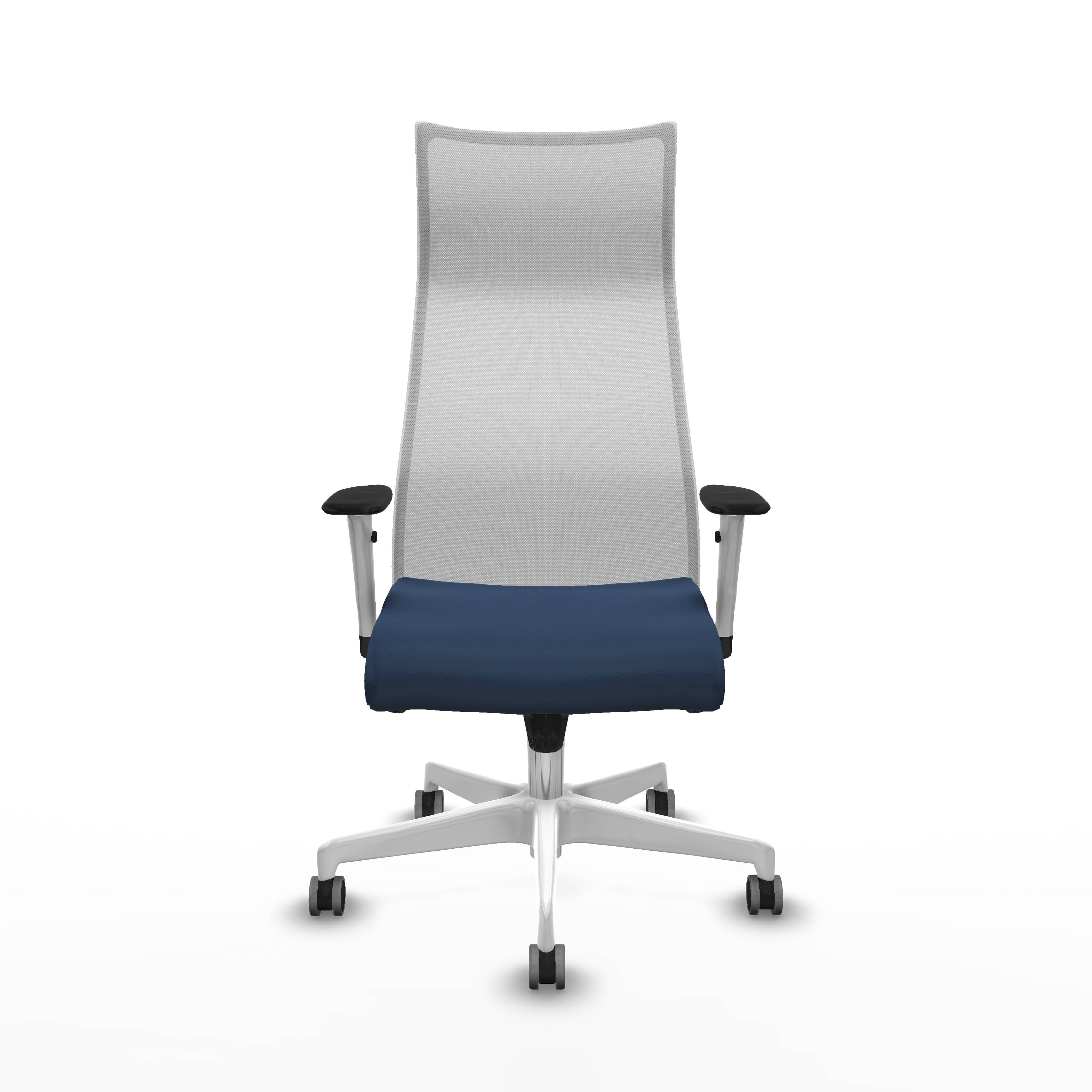 Albacete malla sincro malla blanca similpiel azul marino brazos blancos base blanca ruedas 65mm engomadas