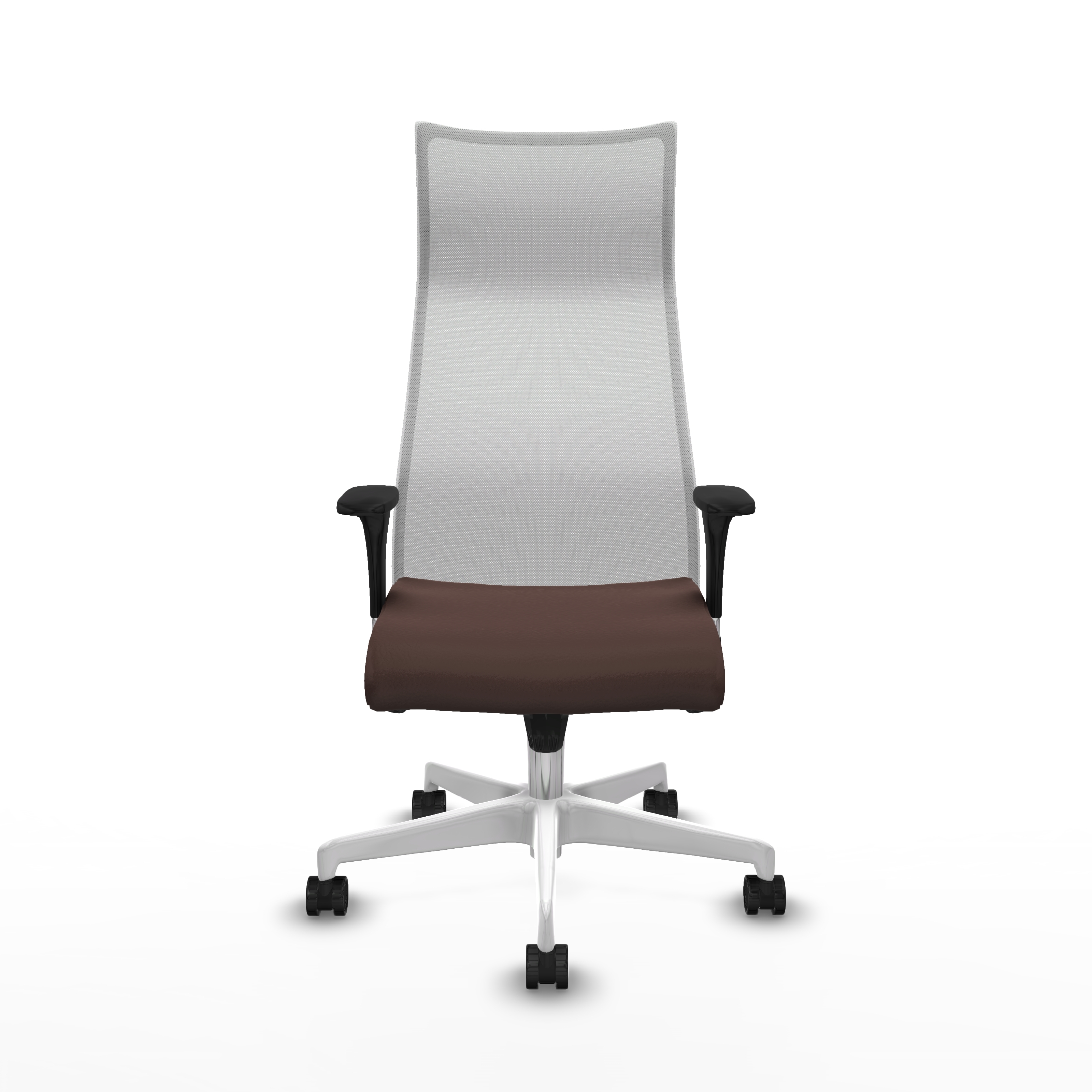 Albacete malla sincro malla blanca similpiel marrón oscuro brazos 1D base blanca ruedas 65 mm nailon