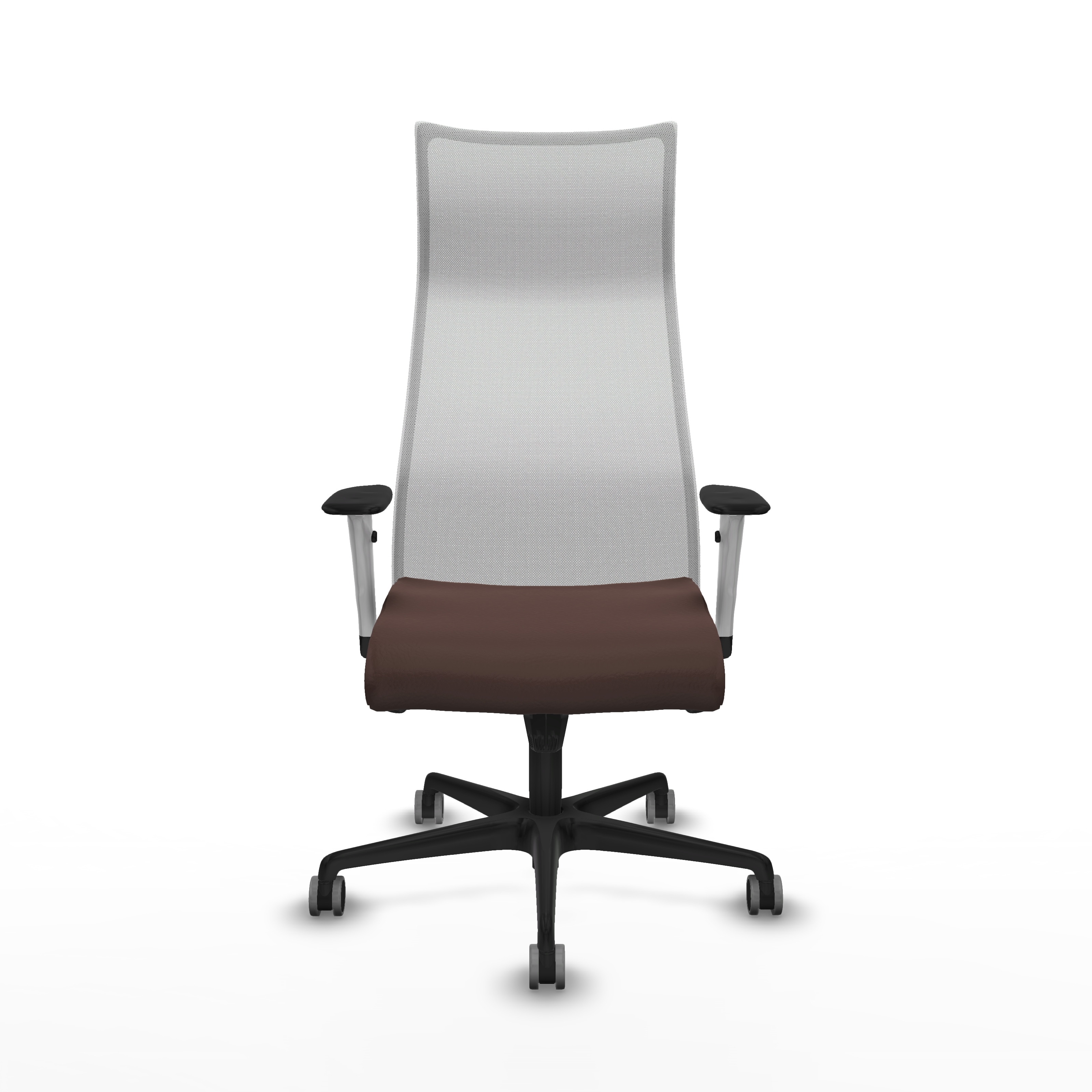 Albacete malla sincro malla blanca similpiel marrón oscuro brazos blancos base nailon ruedas 65mm engomadas