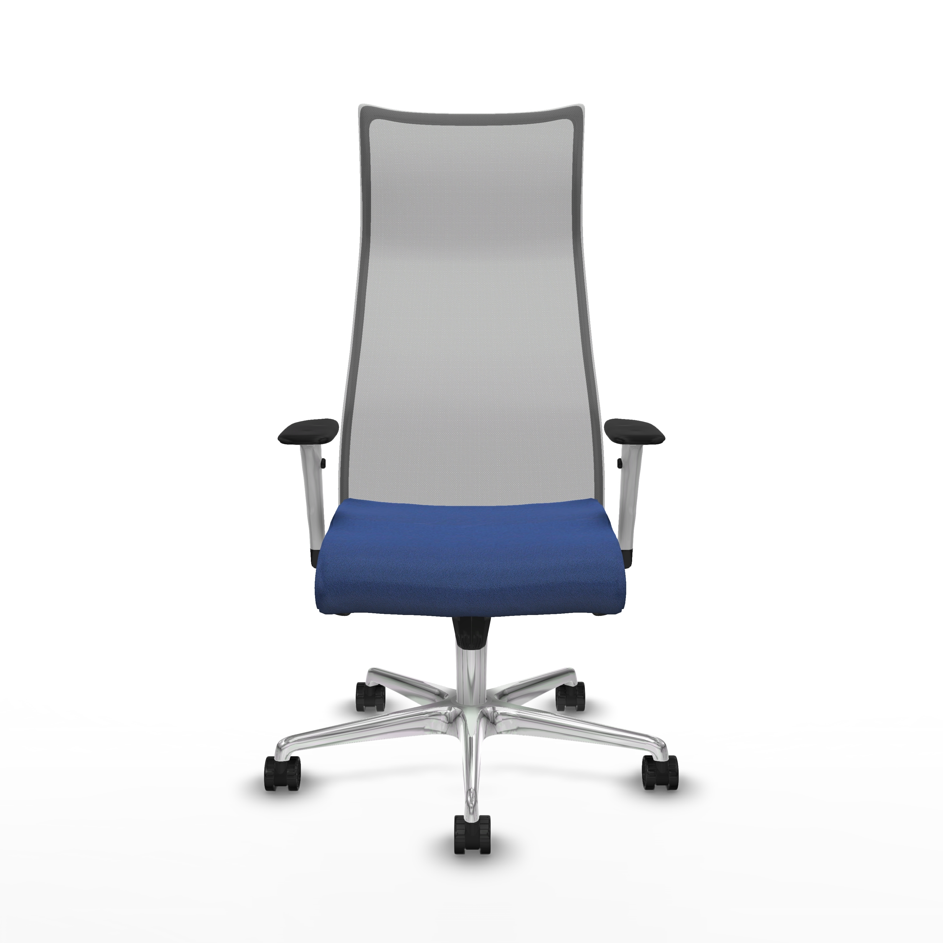 Albacete malla sincro malla gris bali azul marino brazos blancos base aluminio ruedas 65 mm nailon