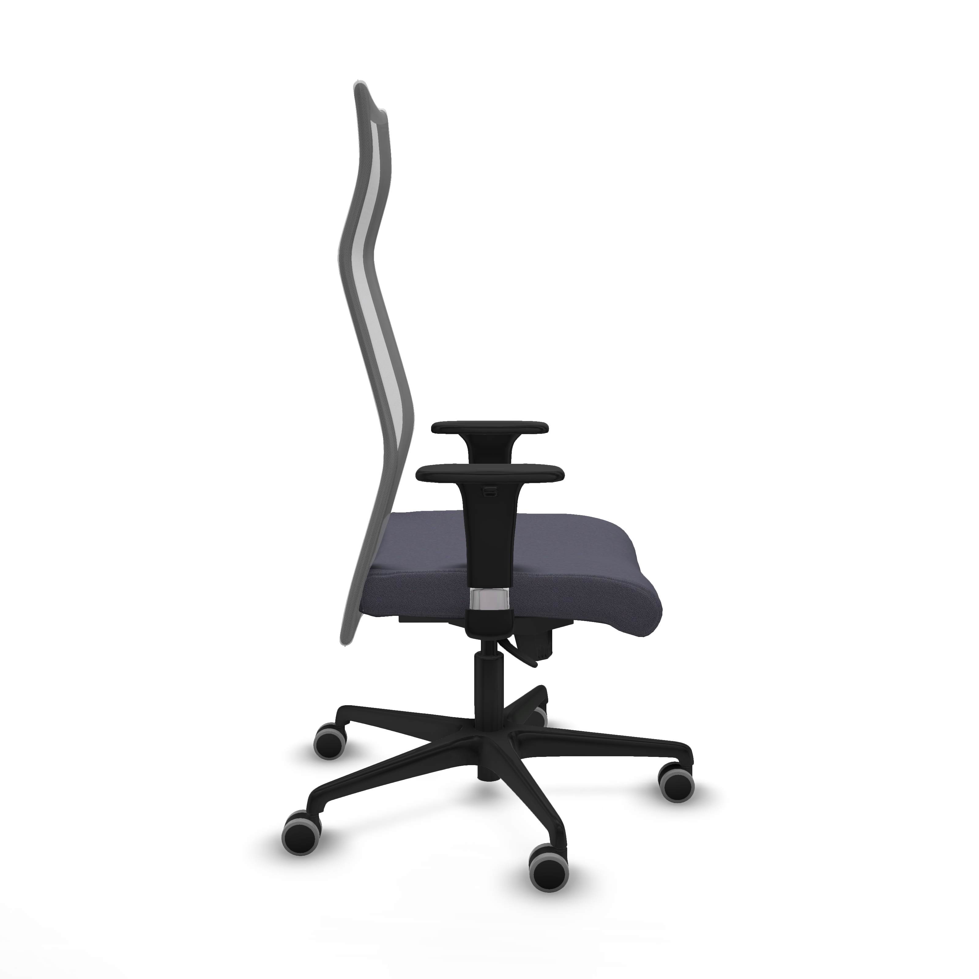 El mecanismo permite la regulación de la inclinación del respaldo y asiento con fijación en 5 puntos, además de ajuste en la altura del asiento, que varía entre 46 y 55 cm, adaptándose a diferentes necesidades. Los brazos 1D son ajustables en altura, desde 66 hasta 73 cm, facilitando una postura personalizada y ergonómica.
