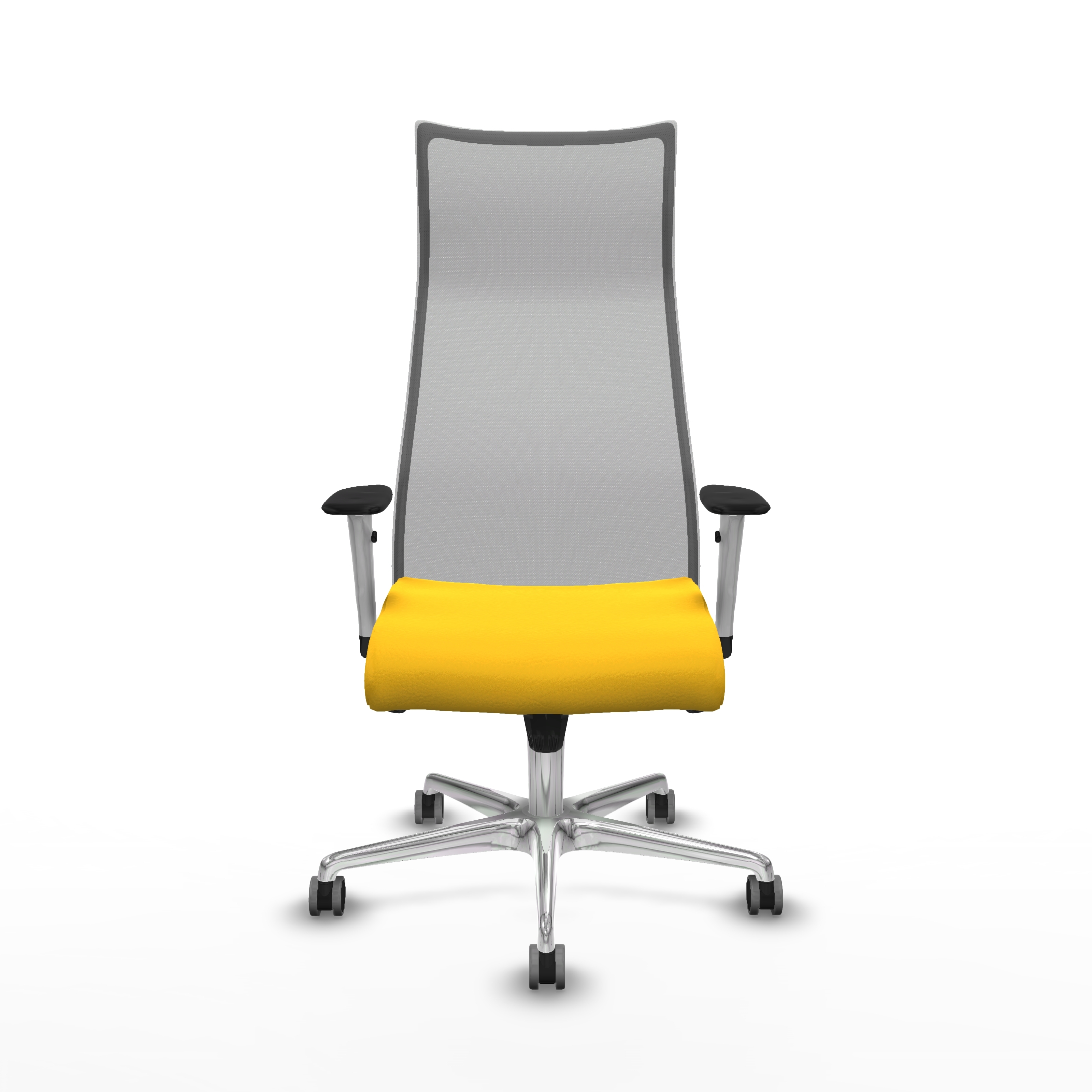 Albacete malla sincro malla gris similpiel amarillo brazos blancos base aluminio ruedas 65mm engomadas