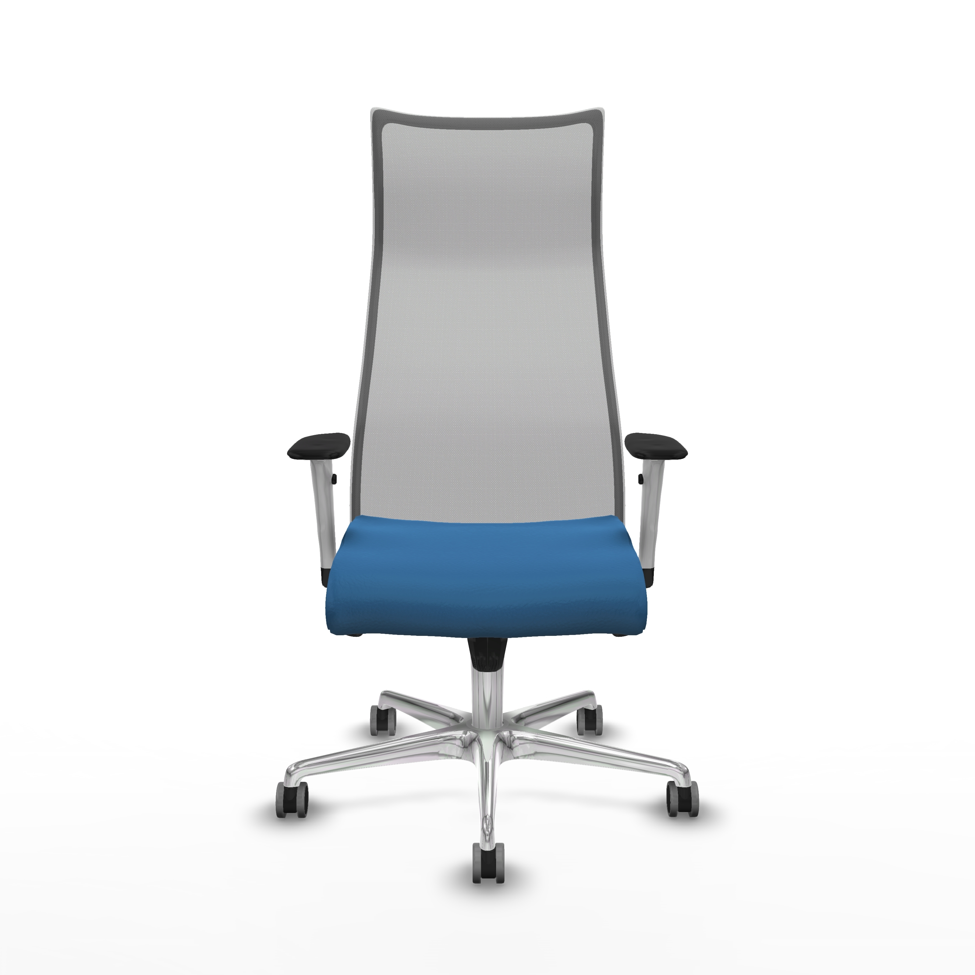 Albacete malla sincro malla gris similpiel azul claro brazos blancos base aluminio ruedas 65mm engomadas