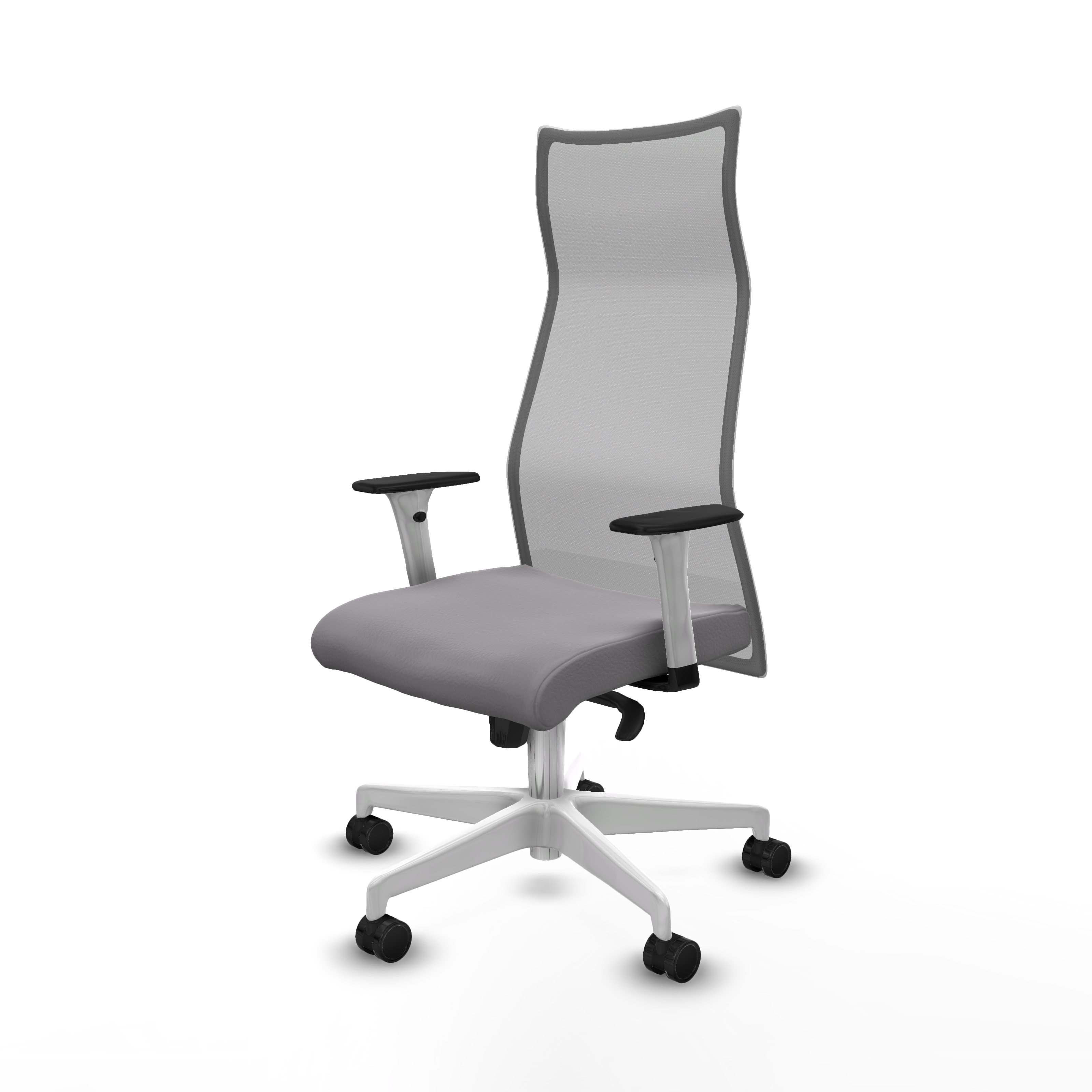 Albacete malla sincro malla gris similpiel gris brazos blancos base blanca ruedas 65 mm nailon