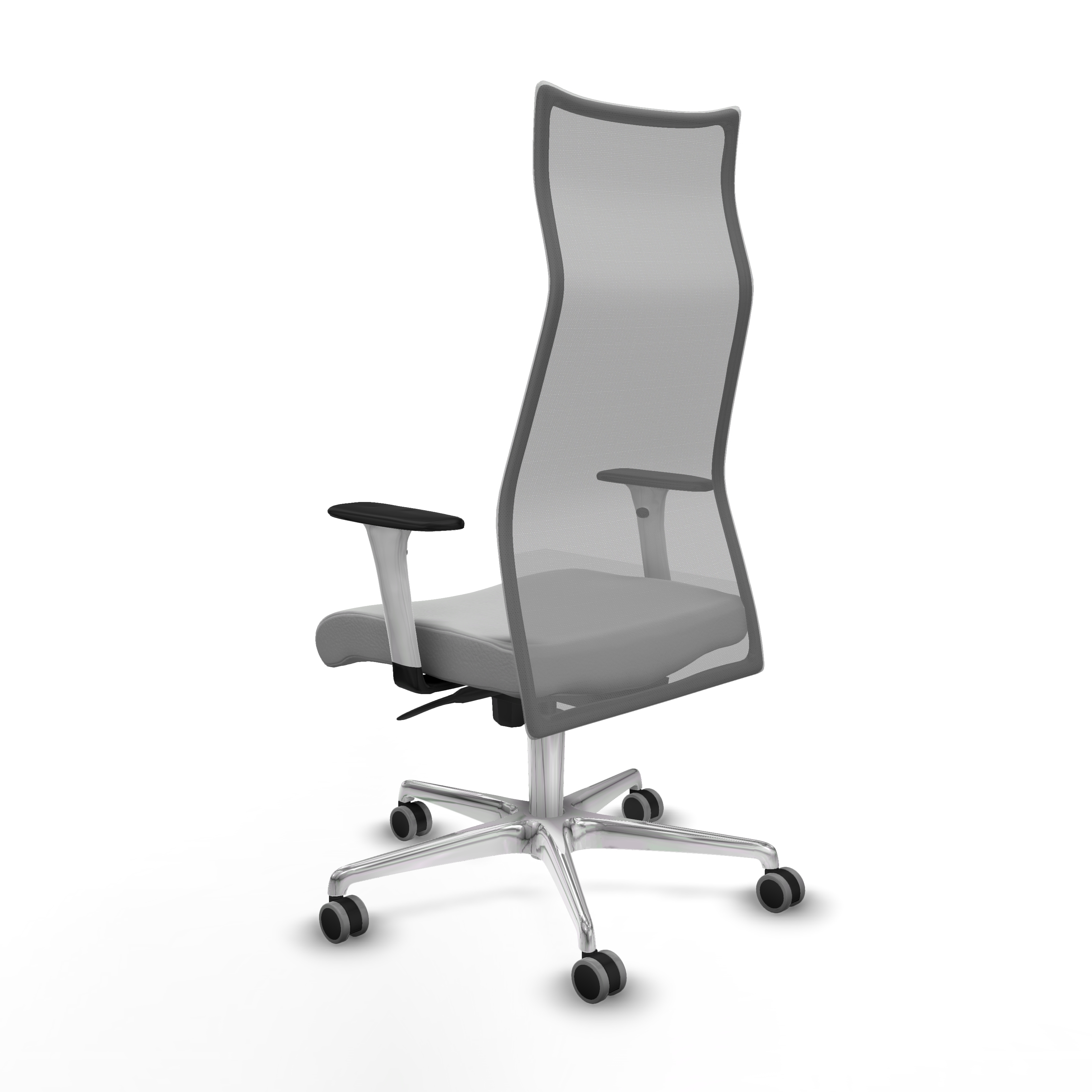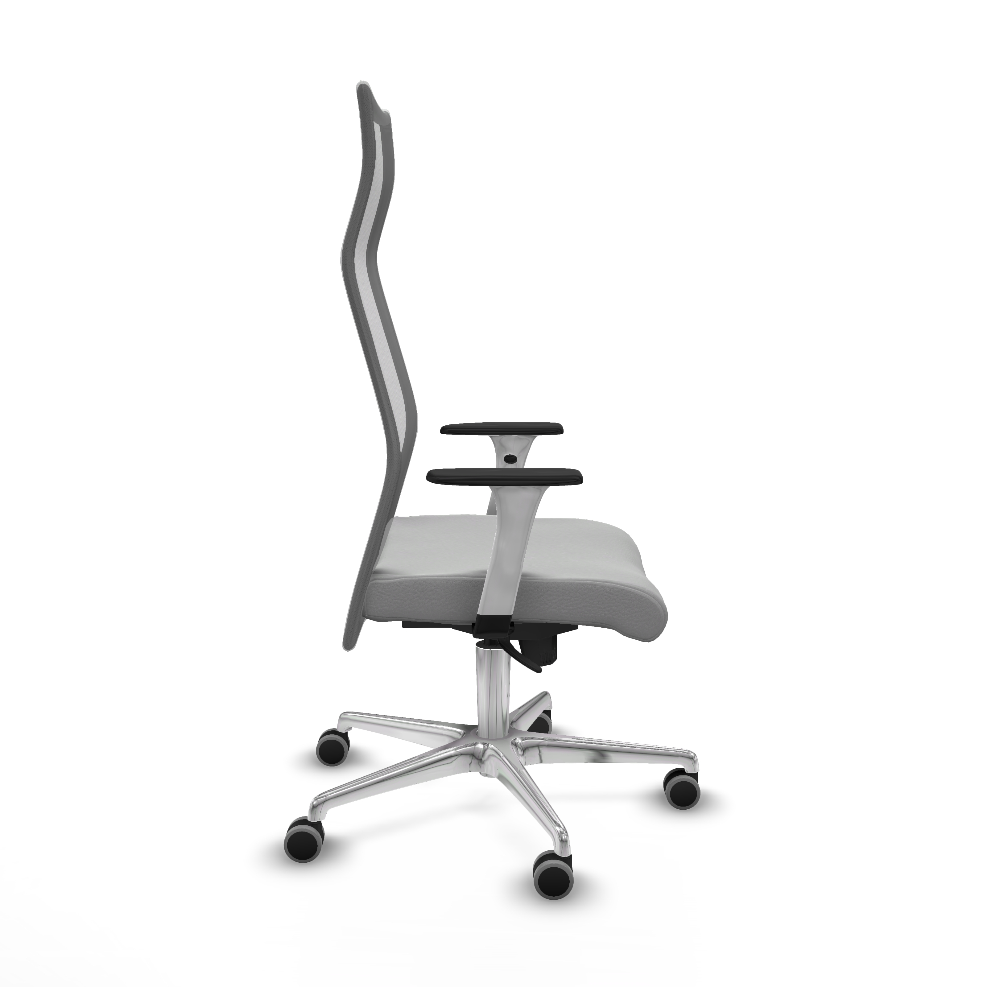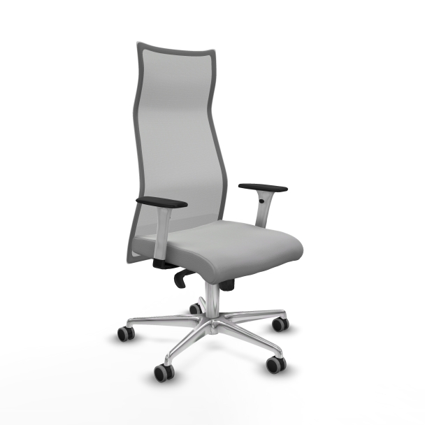 Albacete malla sincro malla gris similpiel gris claro brazos blancos base aluminio ruedas 65mm engomadas