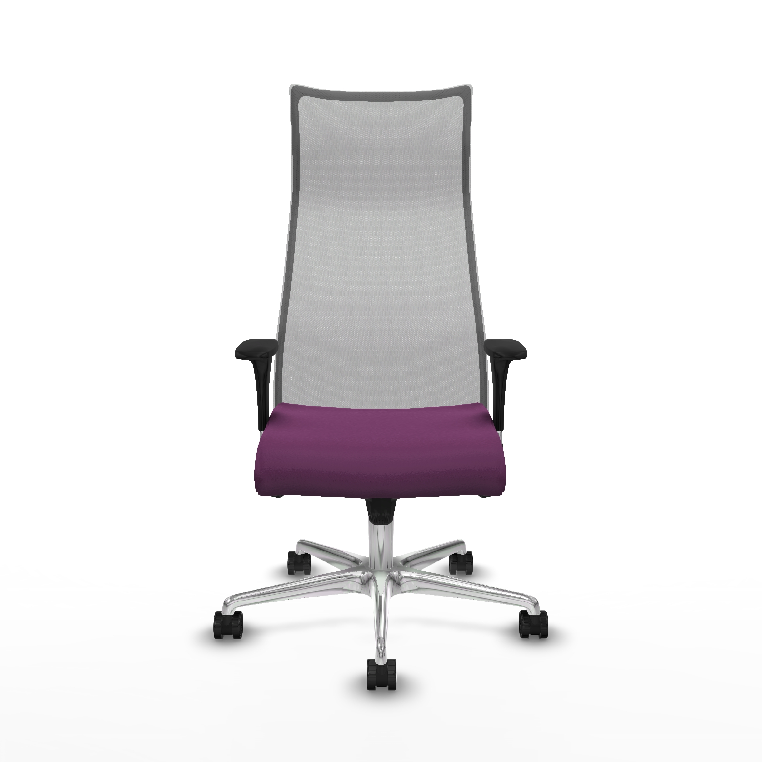 Albacete malla sincro malla gris similpiel morado brazos 1D base aluminio ruedas 65 mm nailon