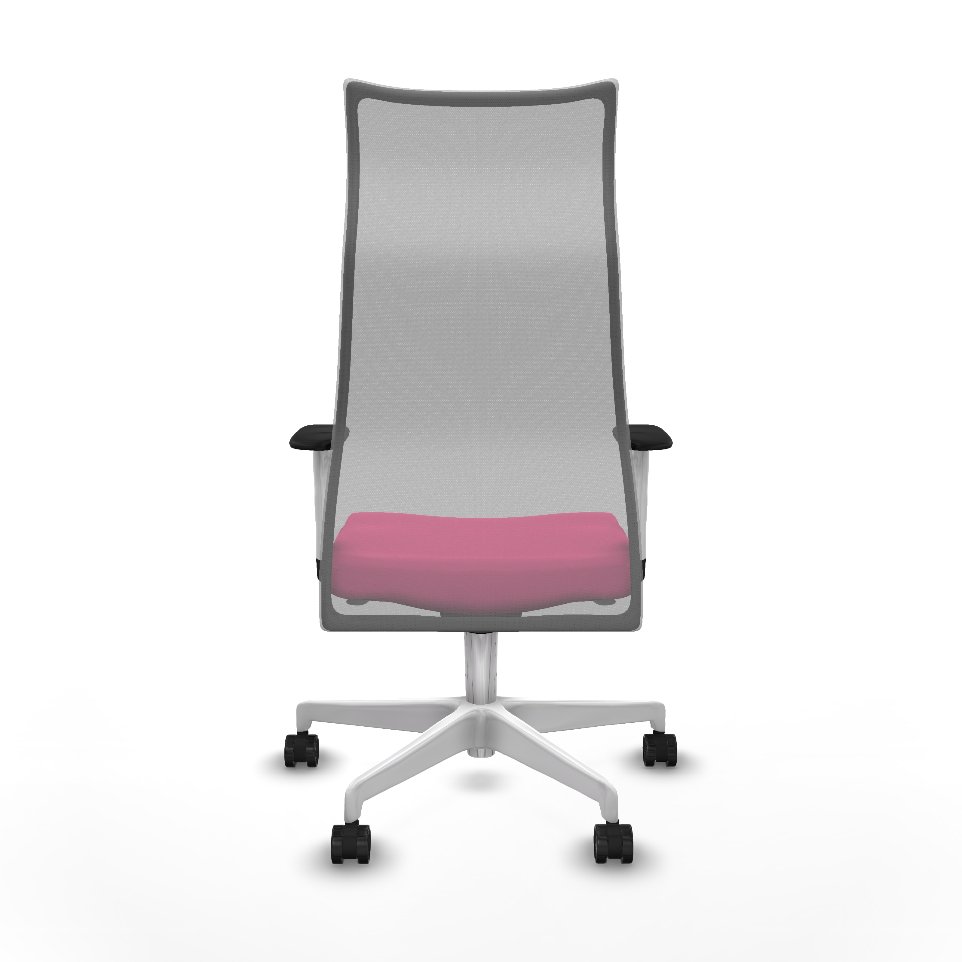 Albacete malla sincro malla gris similpiel rosa brazos blancos base blanca ruedas 65 mm nailon