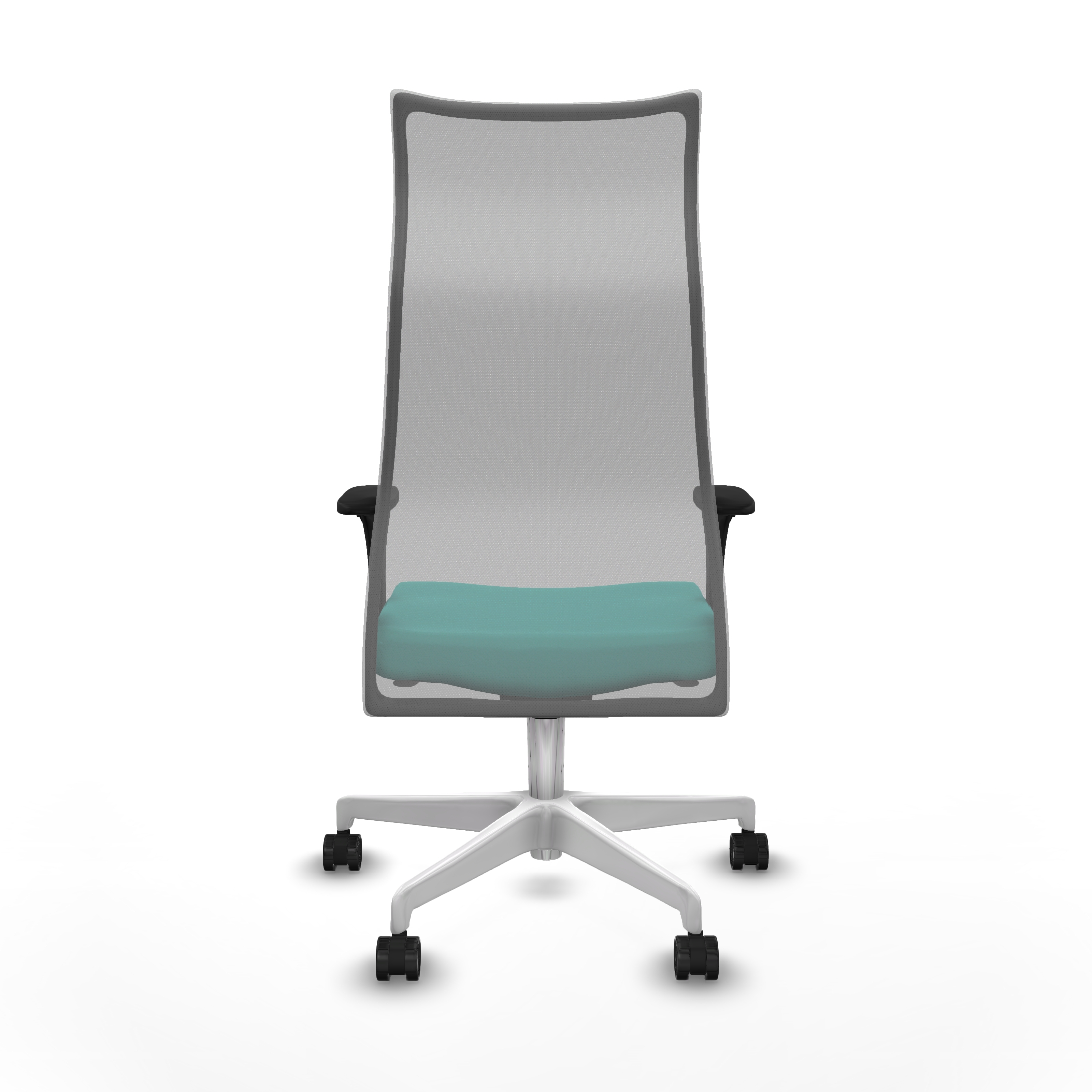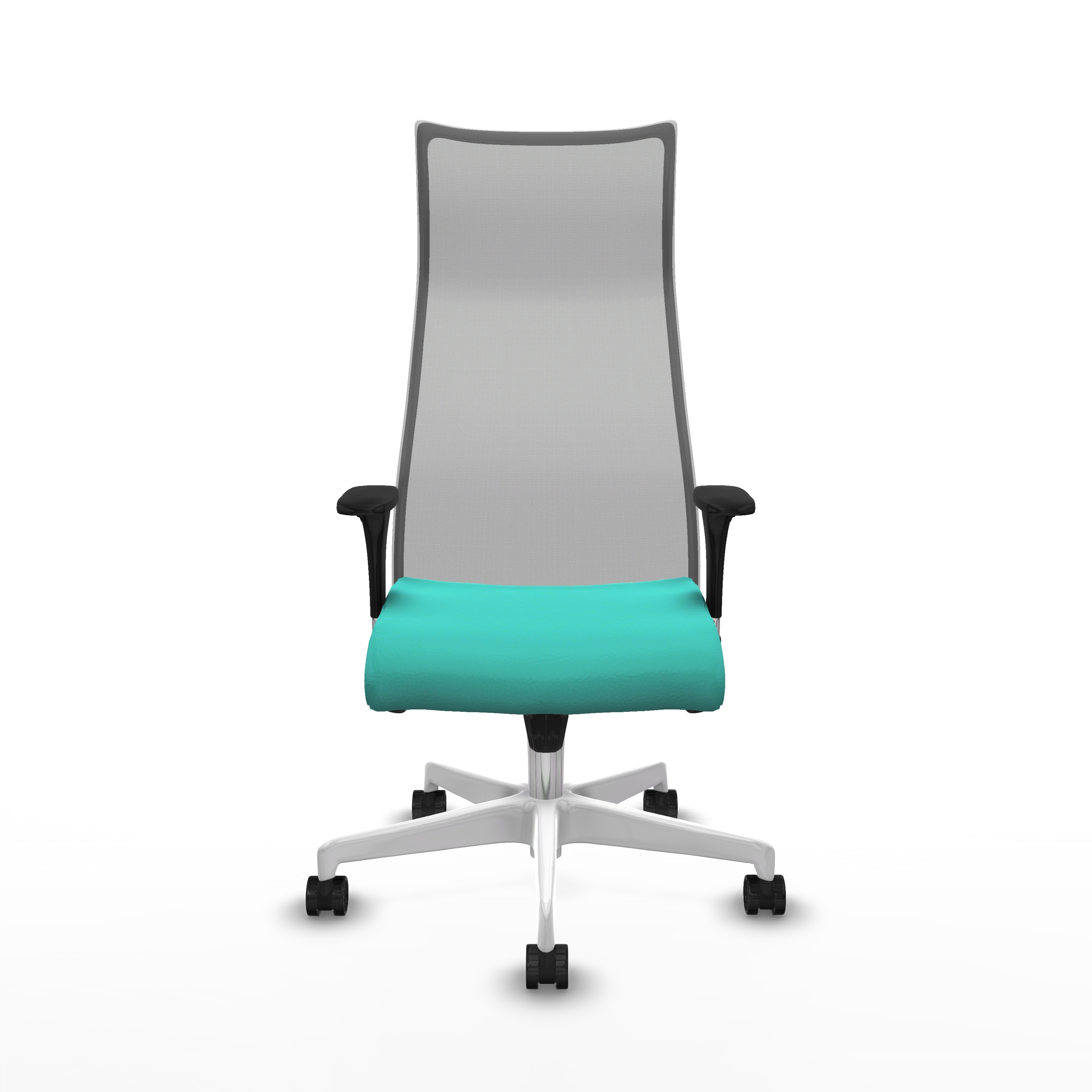 Albacete malla sincro malla gris similpiel turquesa brazos 1D base blanca ruedas 65 mm nailon
