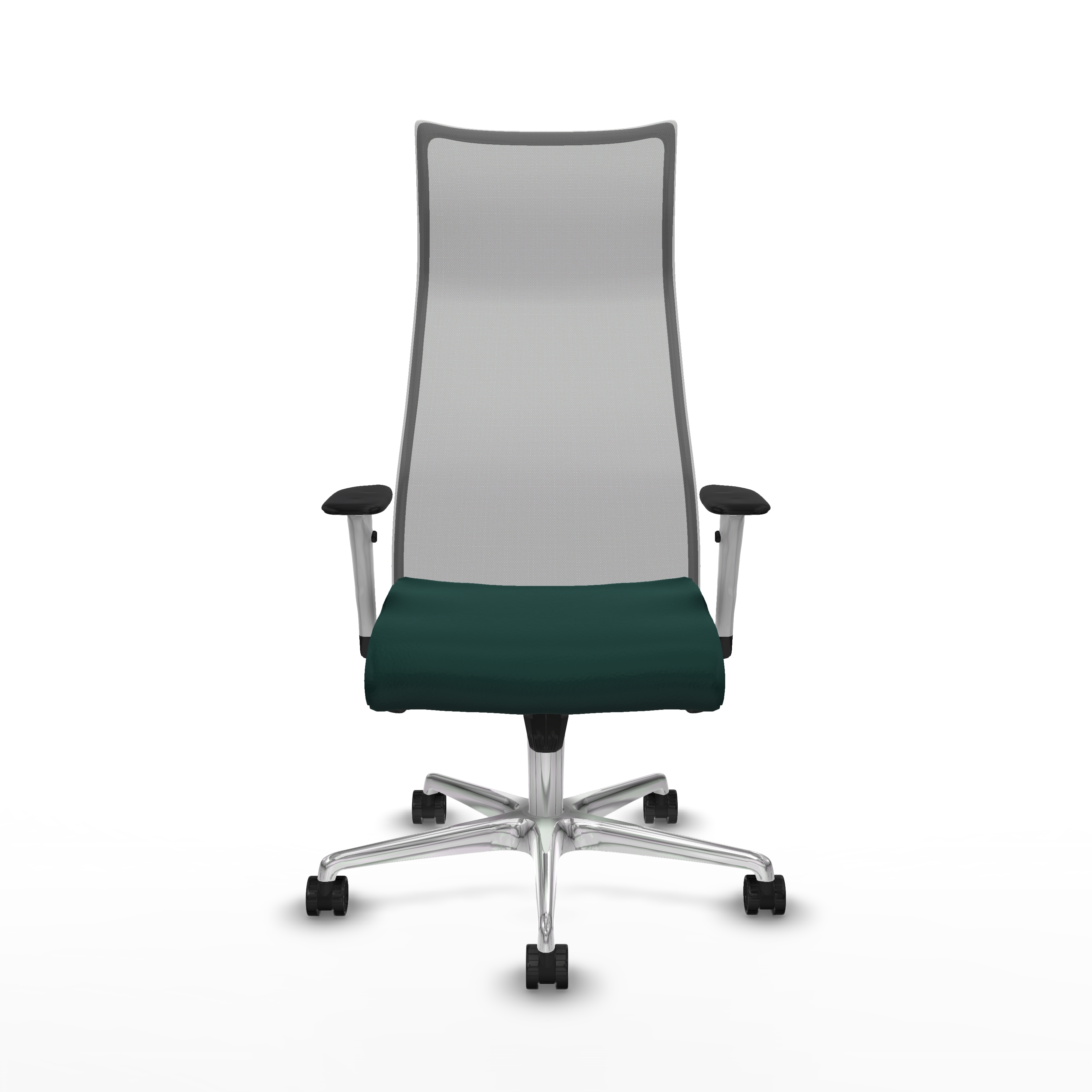 Albacete malla sincro malla gris similpiel verde botella brazos blancos base aluminio ruedas 65 mm nailon