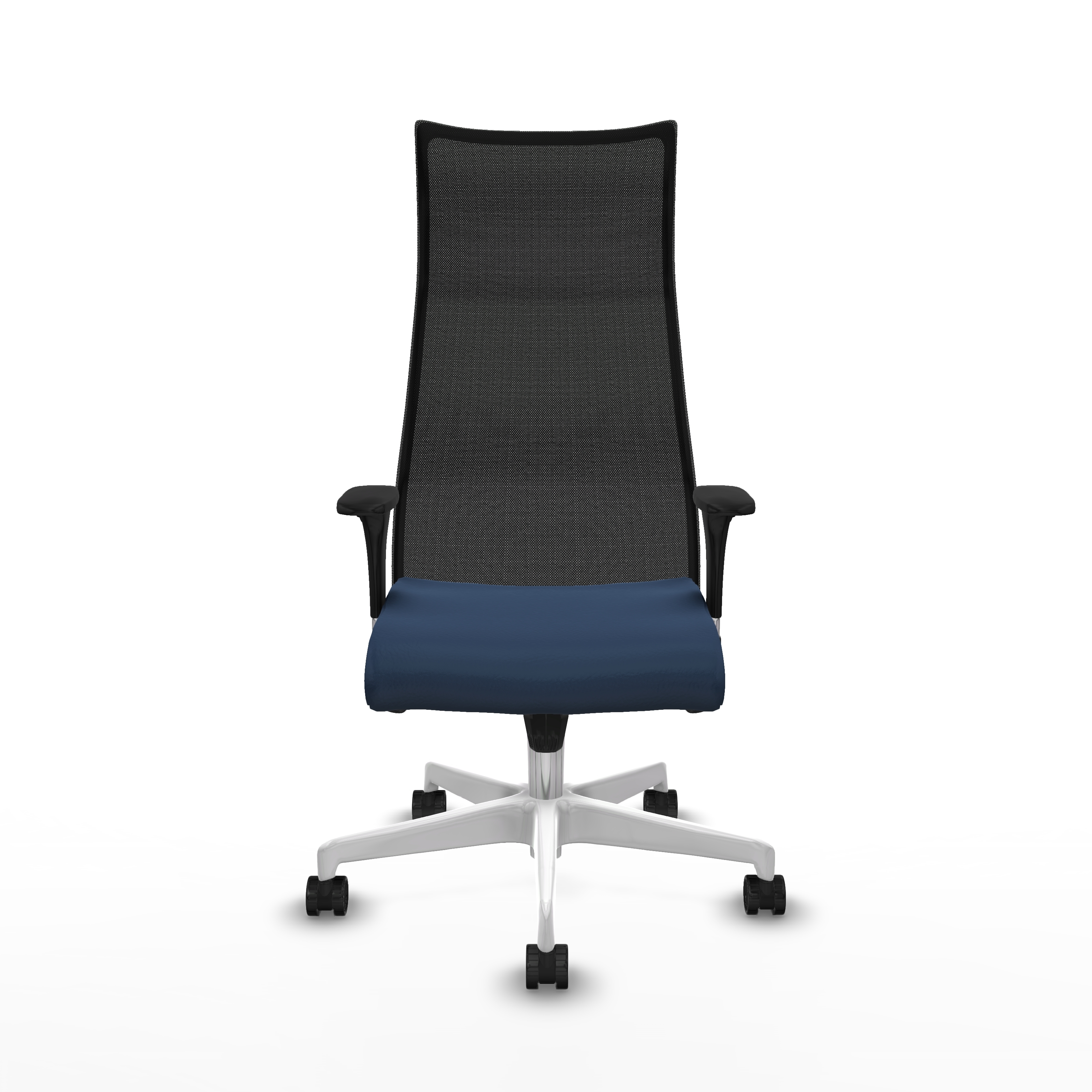 Albacete malla sincro malla negra similpiel azul marino brazos 1D base blanca ruedas 65 mm nailon
