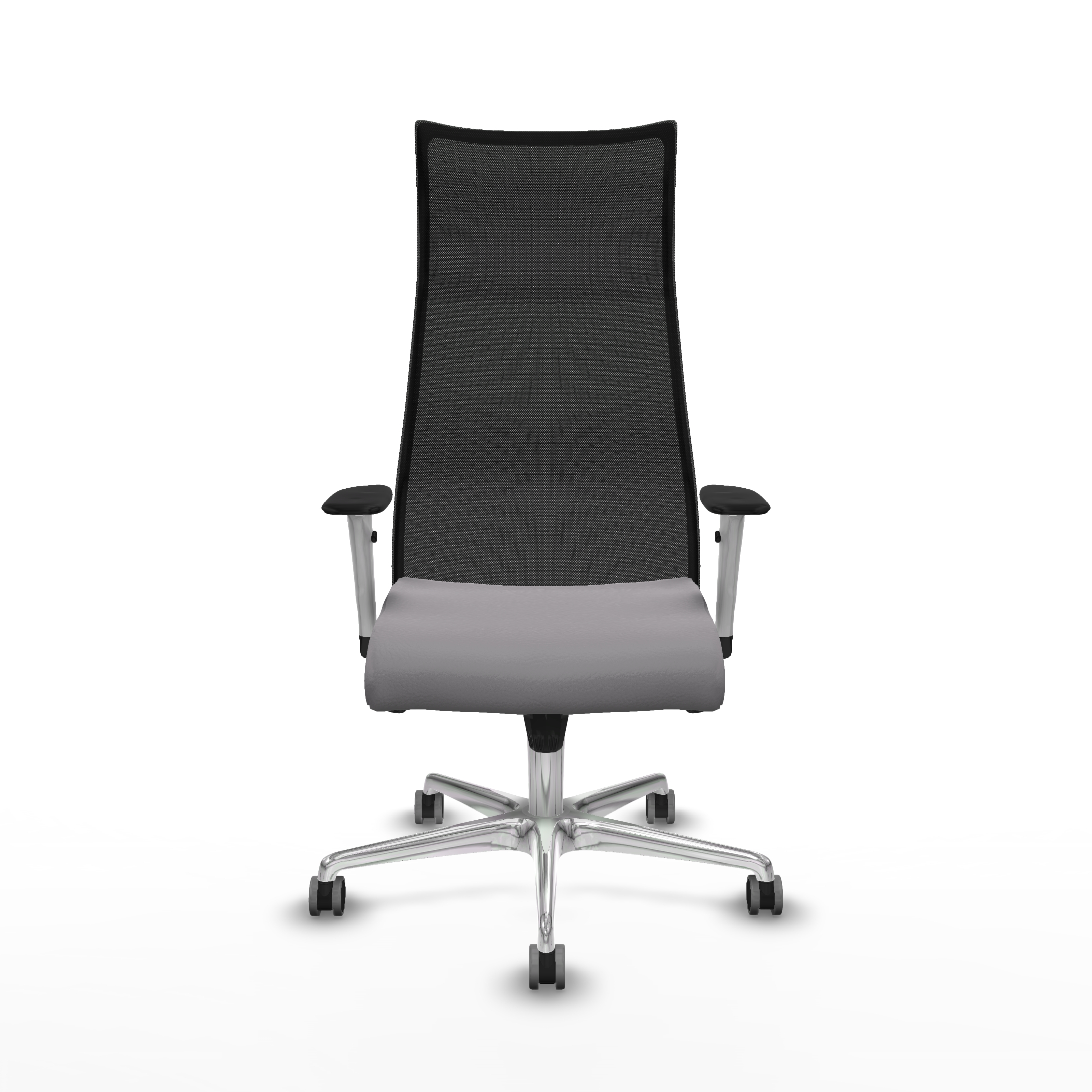 Albacete malla sincro malla negra similpiel gris brazos blancos base aluminio ruedas 65mm engomadas
