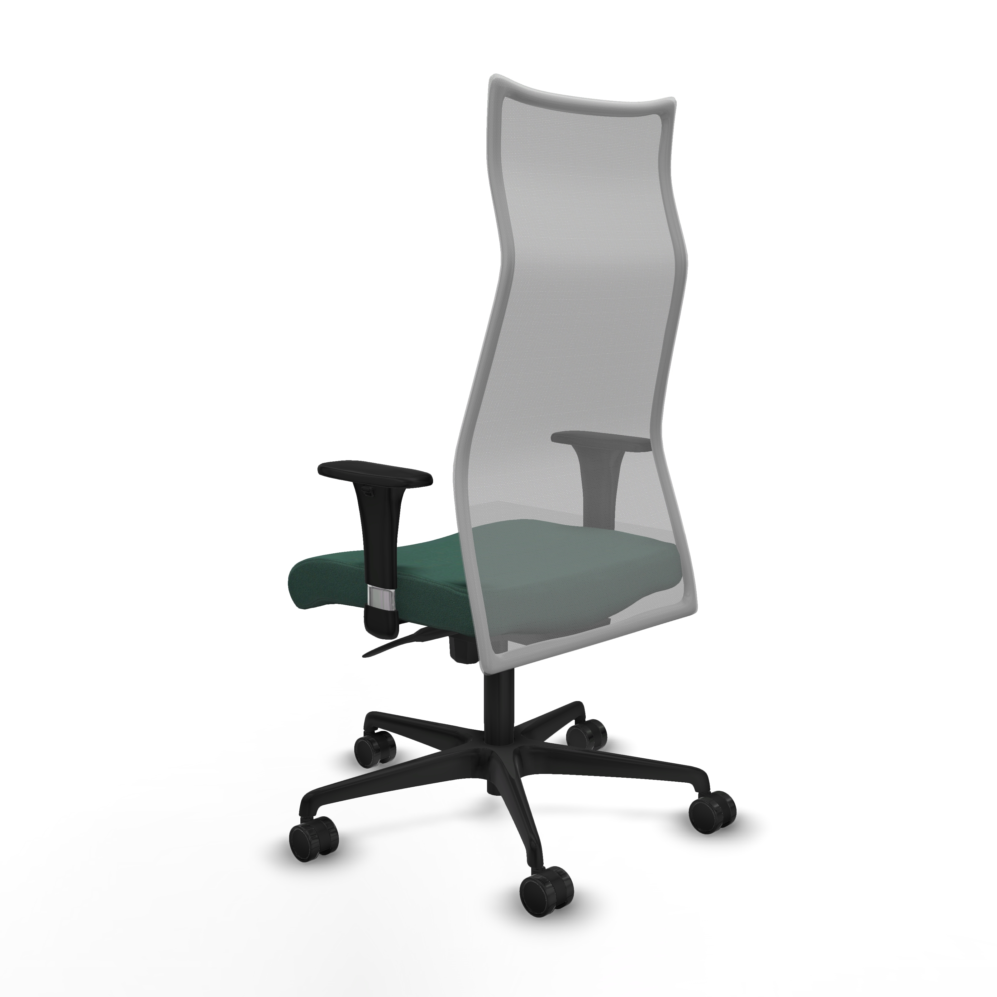 El mecanismo incluye regulación de la inclinación del respaldo y asiento con fijación en 5 puntos, además de ajuste en la altura del asiento entre 46 y 55 cm, adaptándose a diferentes usuarios y necesidades. Los brazos 1D son ajustables en altura, desde 66 hasta 73 cm, aportando mayor ergonomía.