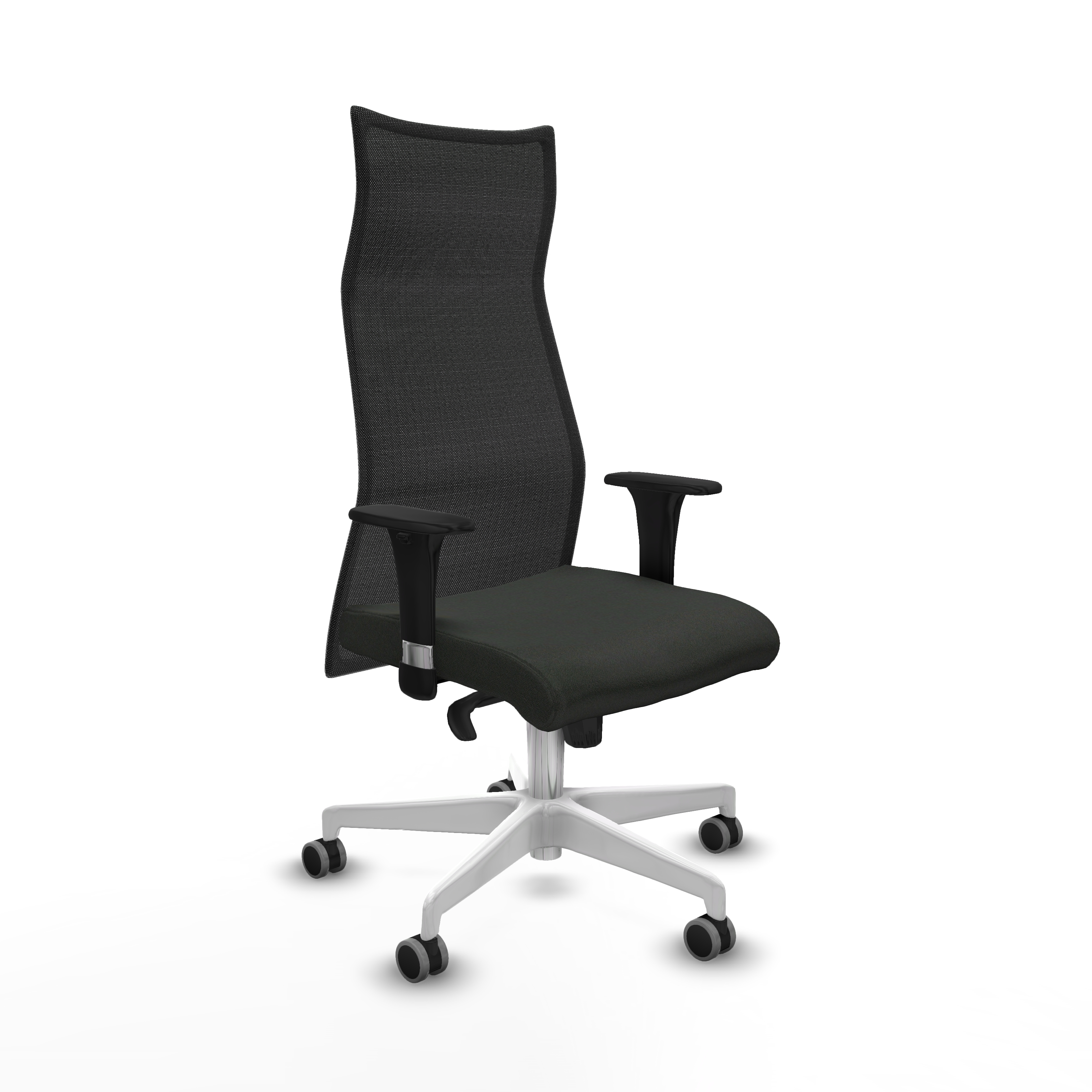 El mecanismo permite la regulación de la inclinación tanto del respaldo como del asiento, con fijación en 5 puntos, además de ajuste en la altura del asiento entre 46 y 55 cm, adaptándose a diferentes usuarios y posturas. Los brazos 1D ofrecen soporte ajustable en altura, con un rango de 66 a 73 cm, facilitando una postura cómoda y ergonómica.