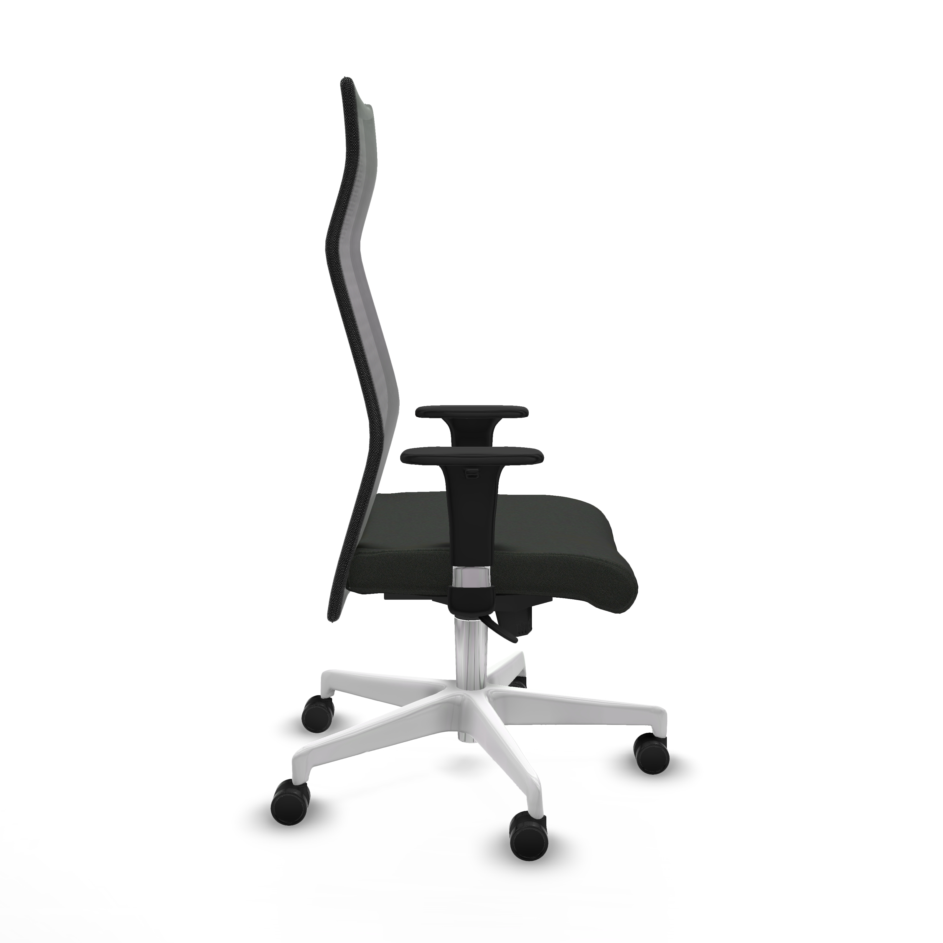 El mecanismo permite la regulación de la inclinación tanto del respaldo de 72 cm como del asiento, con fijación en 5 puntos, además de ajuste en la altura del asiento entre 46 y 55 cm, facilitando una postura ergonómica personalizada. Los brazos 1D son ajustables en altura, con un rango de 66 a 73 cm, aportando soporte adicional sin sacrificar libertad de movimiento.