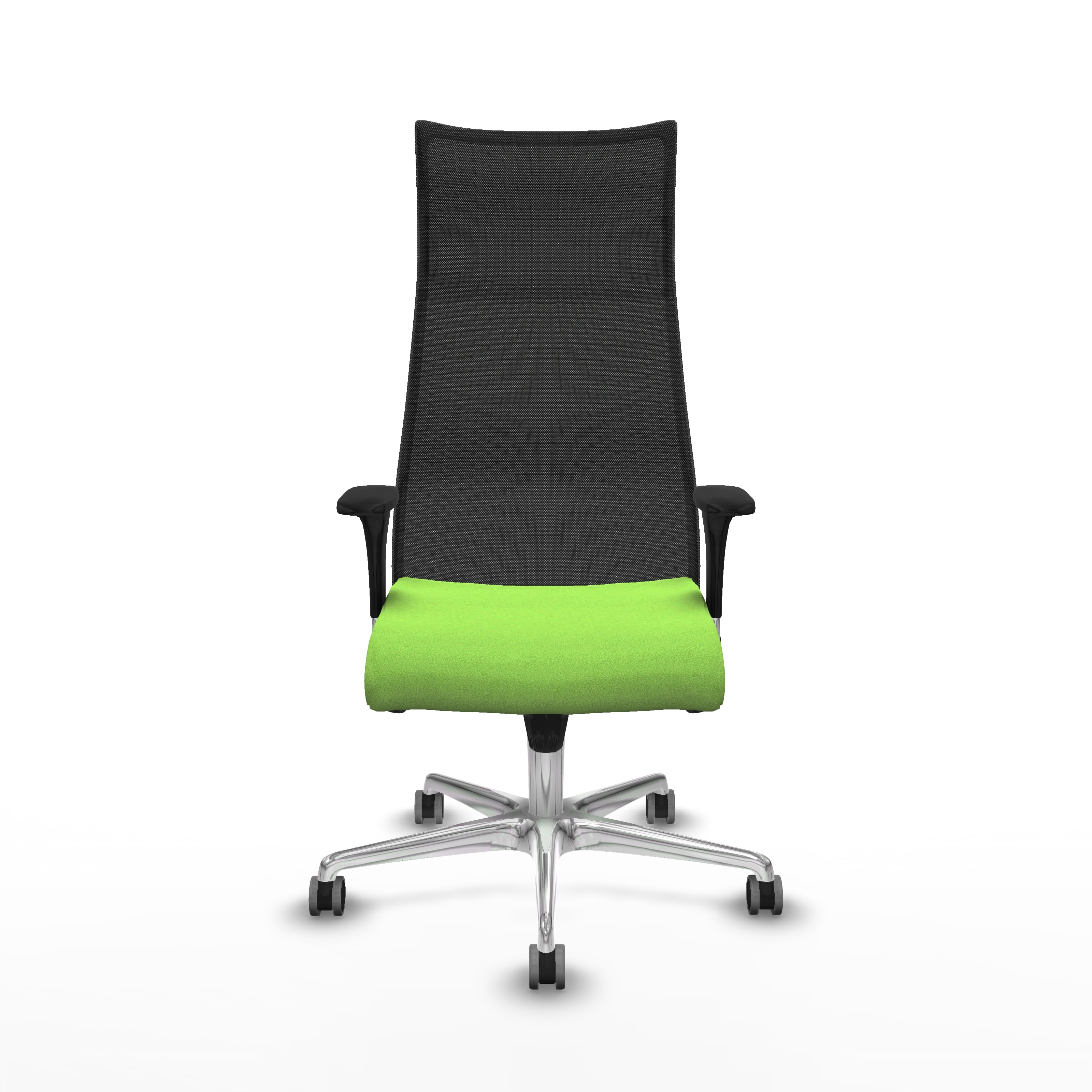 Los brazos 1D son ajustables en altura, desde 66 hasta 73 cm, facilitando una postura cómoda y ergonómica. La altura total de la silla es regulable entre 121 y 130 cm, con el asiento ajustable entre 46 y 55 cm, adaptándose a diferentes usuarios y espacios.