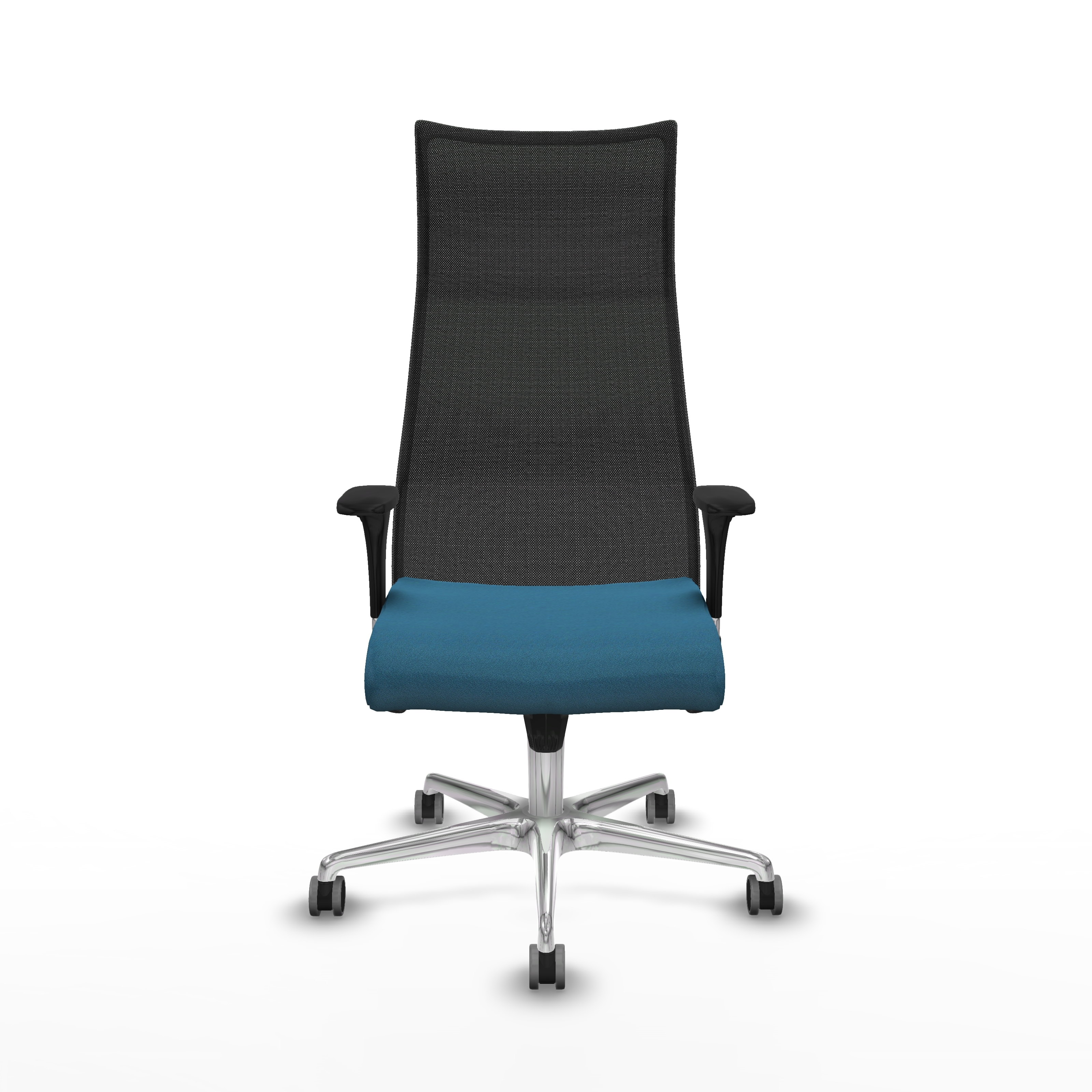 El mecanismo permite la regulación de la inclinación tanto del respaldo como del asiento, con fijación en 5 puntos, además de ajuste en la altura del asiento entre 46 y 55 cm, adaptándose a diferentes usuarios y posturas. Los brazos 1D son ajustables en altura, desde 66 hasta 73 cm, para mayor comodidad y soporte durante el uso.