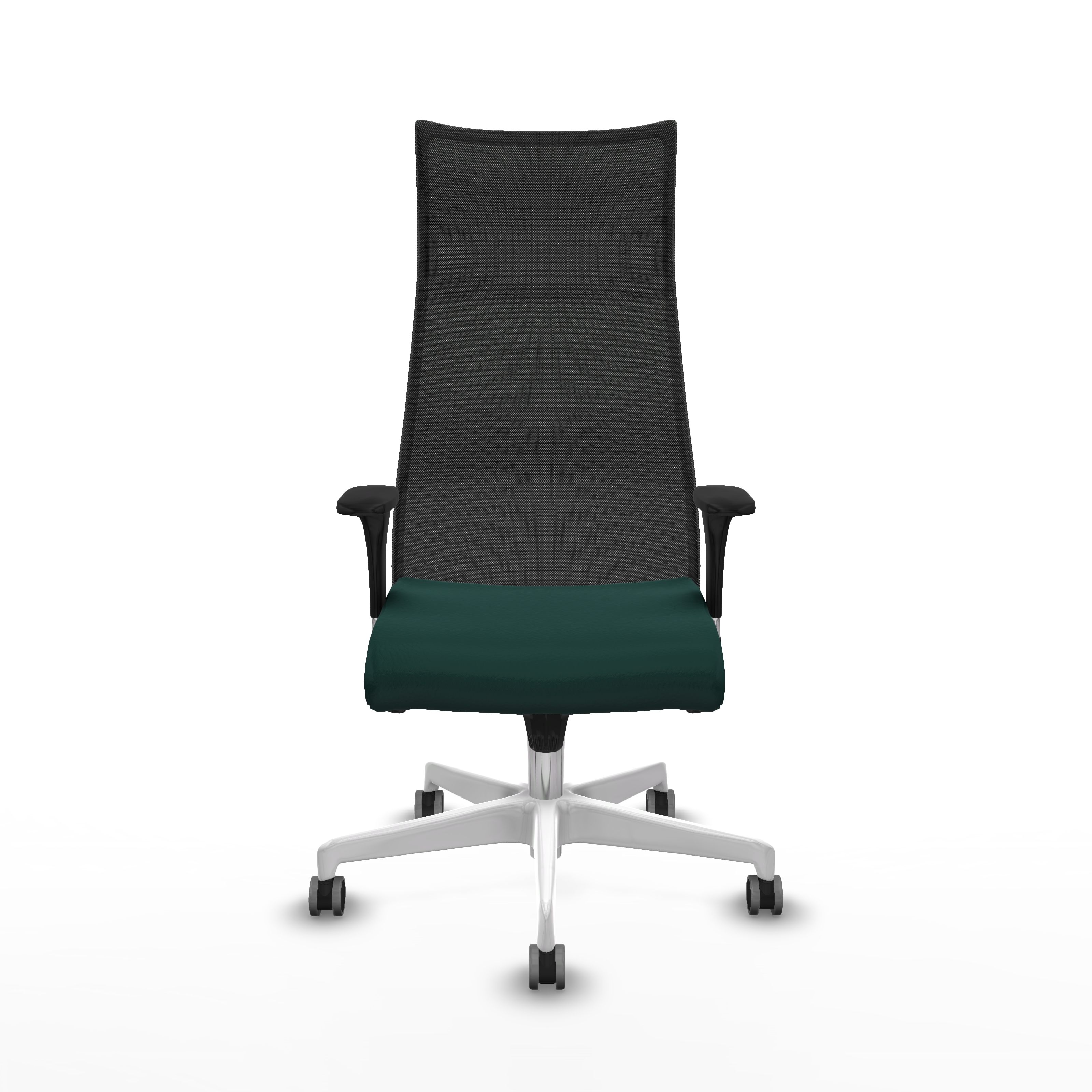 Equipada con ruedas de nailon engomadas de 6.5 cm de diámetro, con eje interno y perno de acero de 11 mm, esta silla ejecutiva verde se desplaza suavemente sin dañar el suelo. Su base de poliamida blanca, con 5 radios y 70 cm de diámetro, aporta robustez y estabilidad, complementando el diseño moderno y elegante.
