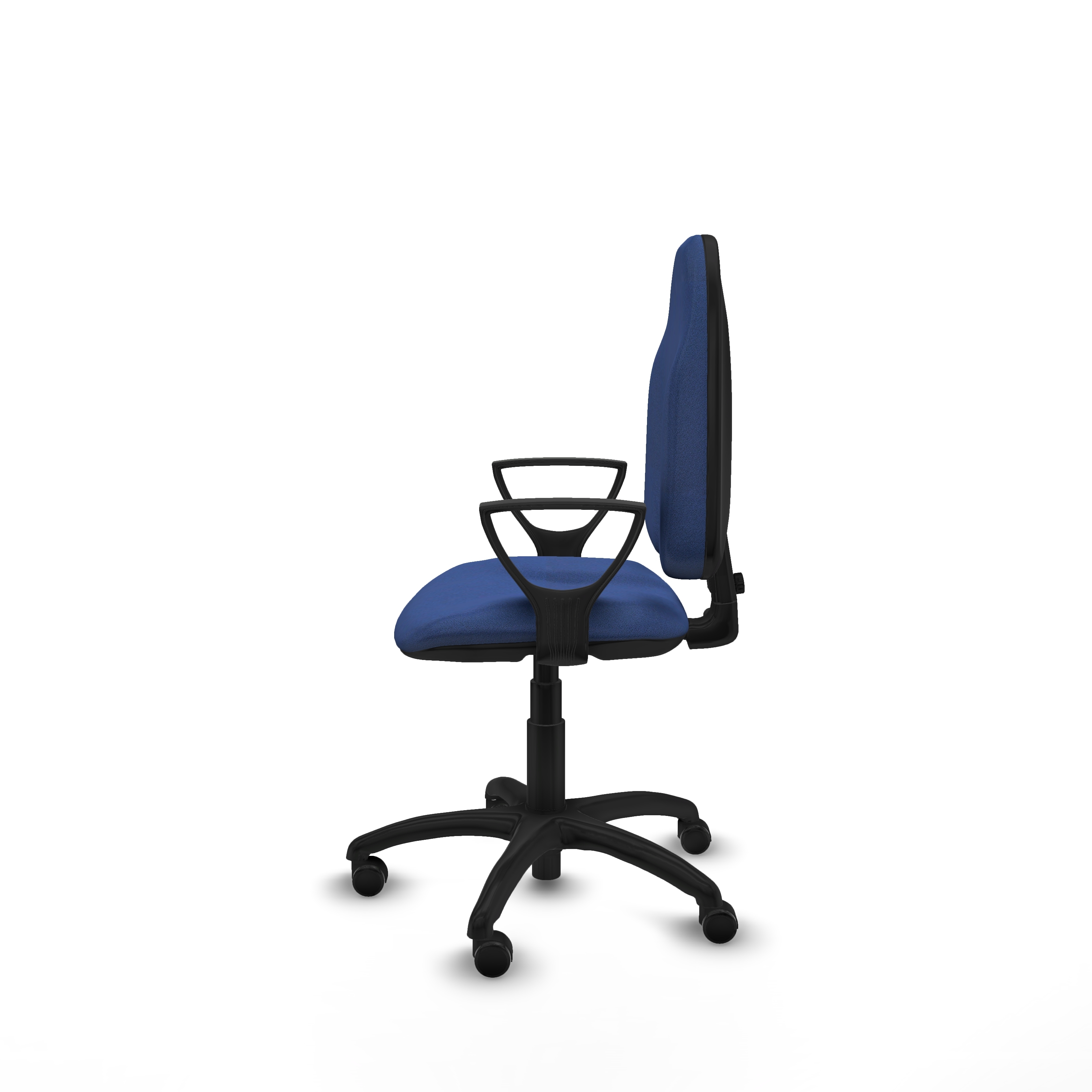 Los brazos fijos, ajustables en altura entre 65 y 78 cm, ofrecen soporte adicional sin sacrificar espacio, ideal para espacios pequeños o áreas administrativas. La altura total de la silla es regulable entre 85 y 100 cm, con asiento ajustable desde 45 hasta 59 cm, facilitando una postura saludable.
