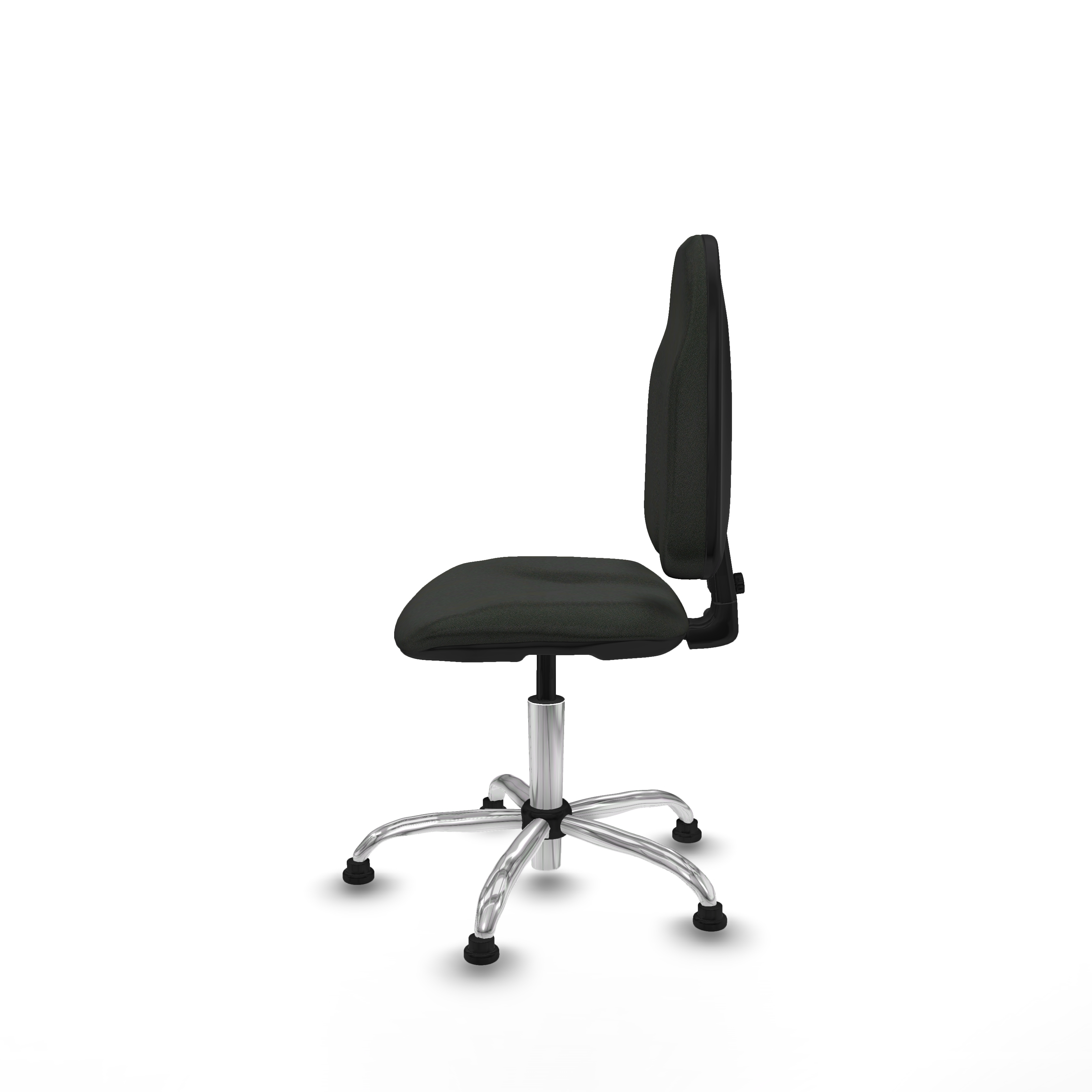 Equipada con ruedas de topes de nailon y perno de 11 mm de diámetro, esta silla garantiza movilidad suave y segura. La base metálica cromada de 5 radios, con un diámetro de 60 cm, aporta estabilidad y resistencia, ideal para ambientes de oficina exigentes. Su mecanismo giratorio facilita la libertad de movimiento sin esfuerzo.