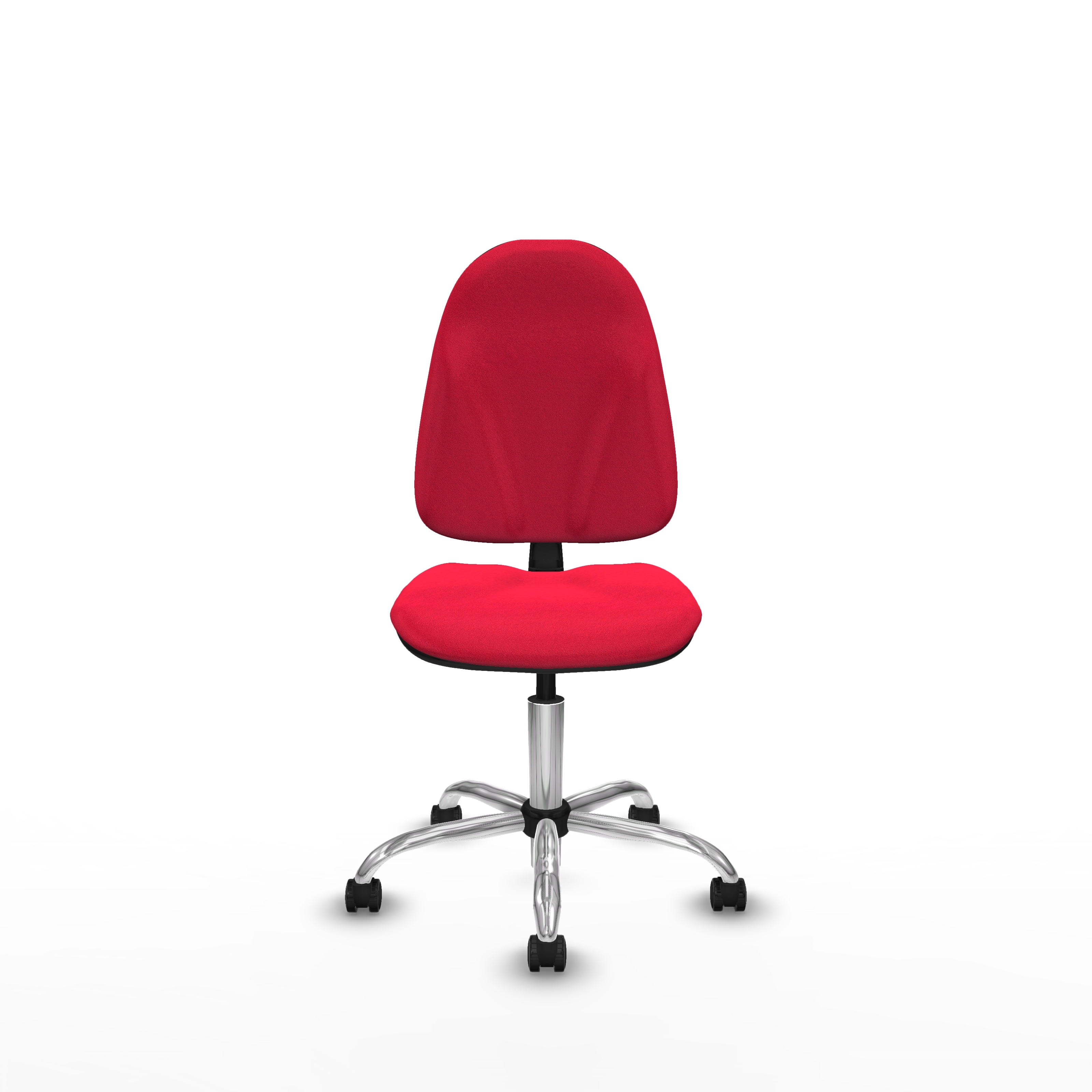 Su mecanismo giratorio permite la regulación en altura del asiento (de 45 a 59 cm), así como ajustes en la altura, inclinación y profundidad del respaldo, facilitando una postura personalizada y saludable. Esta silla de oficina roja es ideal para quienes buscan una solución práctica y estilizada sin brazos ni cabecero, perfecta para espacios que requieren movilidad y confort.
