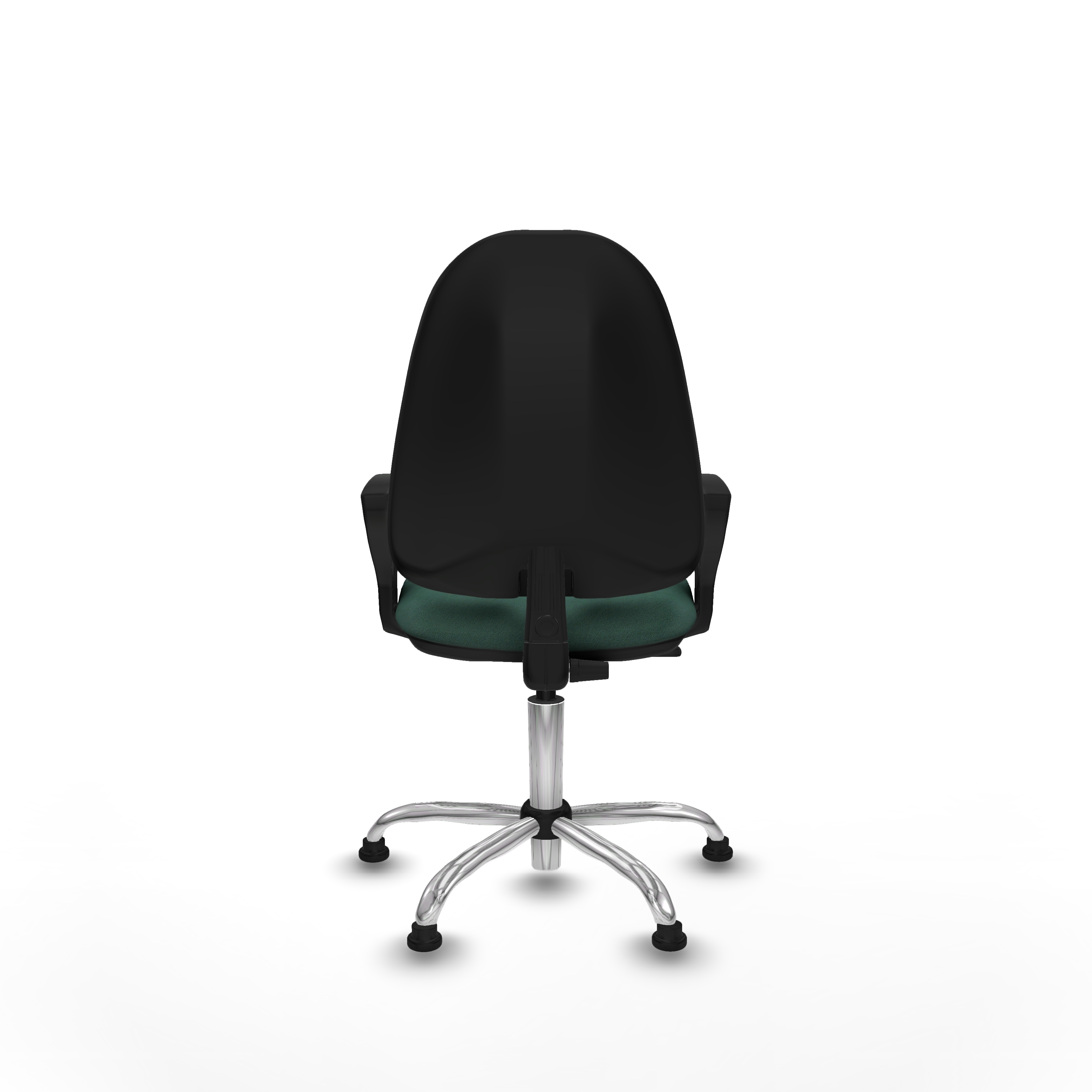 Equipada con ruedas tope de nailon y perno de 11 mm de diámetro, garantiza movilidad controlada y durabilidad. La base metálica cromada de 5 radios, con un diámetro de 60 cm, aporta estabilidad y un acabado elegante que se integra fácilmente en cualquier espacio.