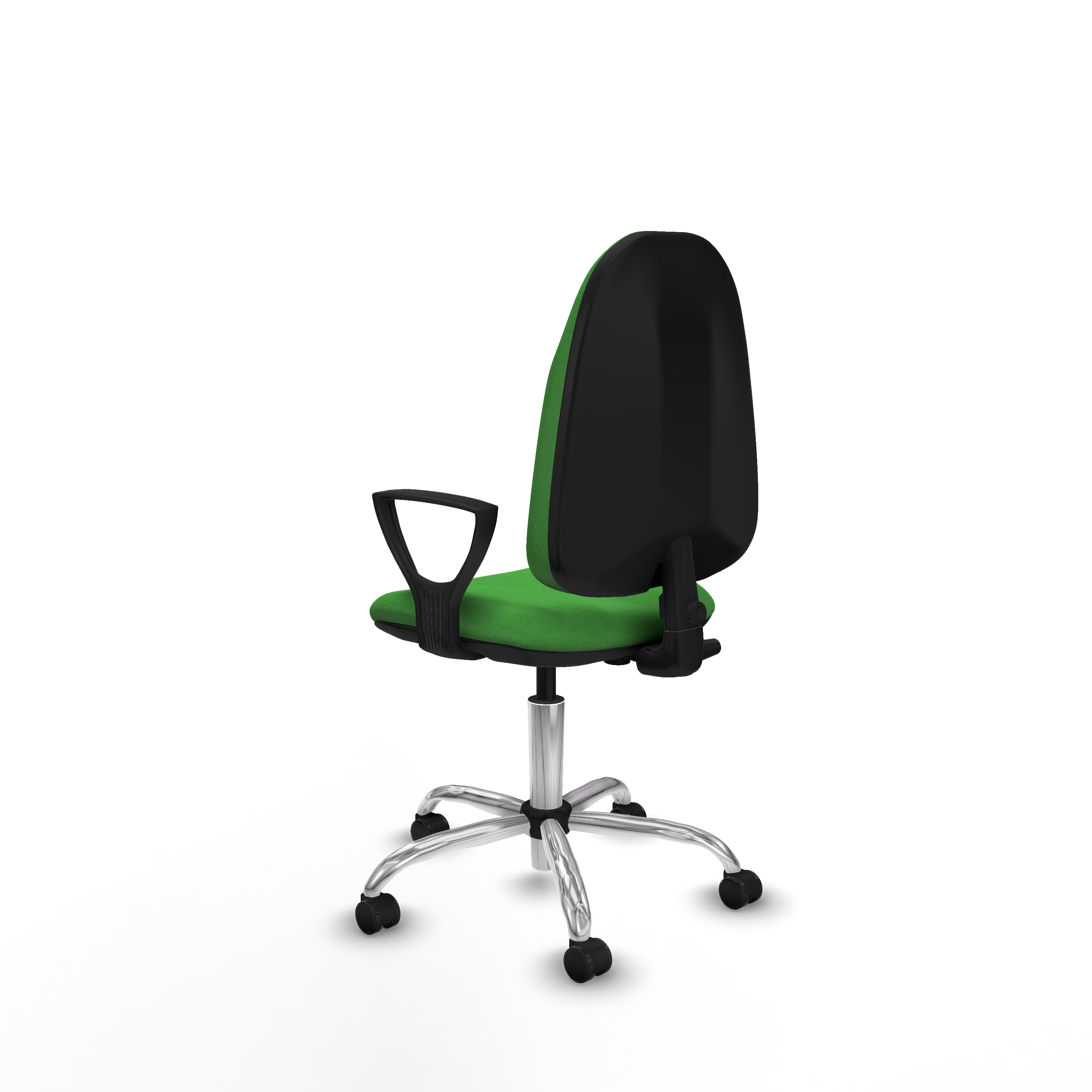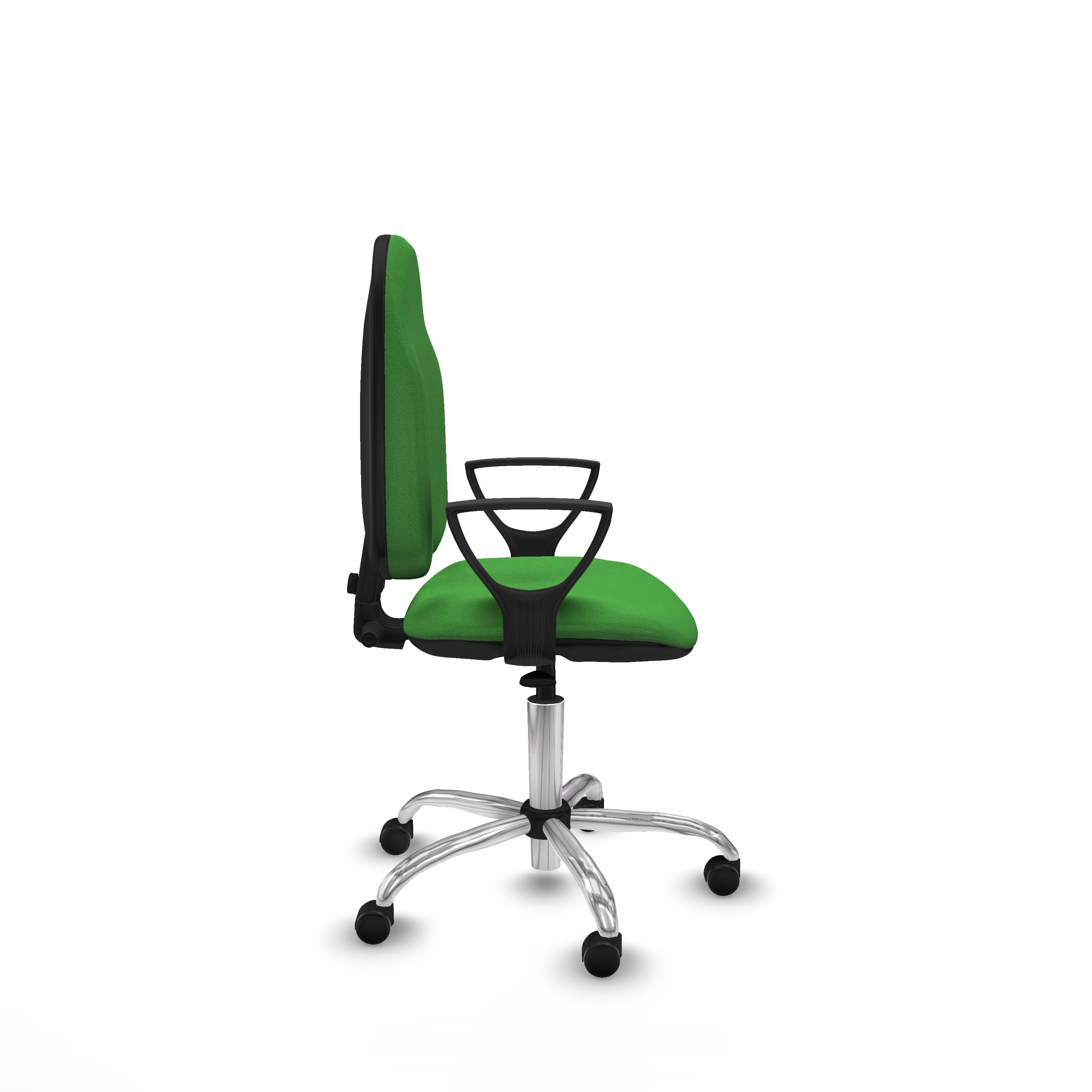 Este modelo cuenta con un mecanismo giratorio que permite la regulación del respaldo en altura, inclinación y profundidad, además de ajuste en la altura del asiento, facilitando una postura personalizada y saludable. Los brazos fijos, ajustables en altura entre 65 y 78 cm, complementan su diseño práctico.