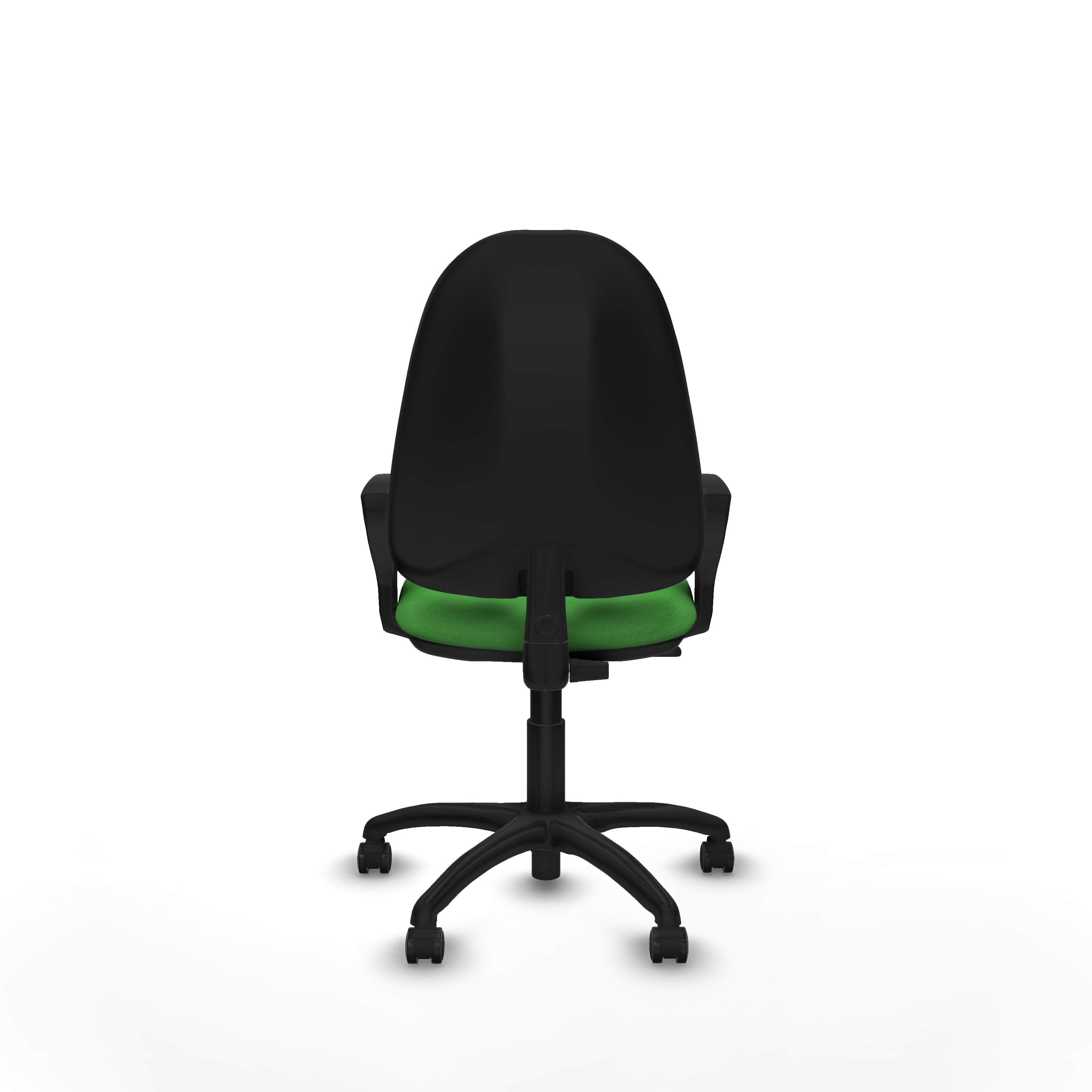 Equipada con ruedas de nailon autofrenantes de 50 mm de diámetro, con eje interno y perno de acero de 11 mm, garantiza movilidad segura y duradera. La base de poliamida con 5 radios y 60 cm de diámetro, en acabado negro, aporta estabilidad y resistencia.