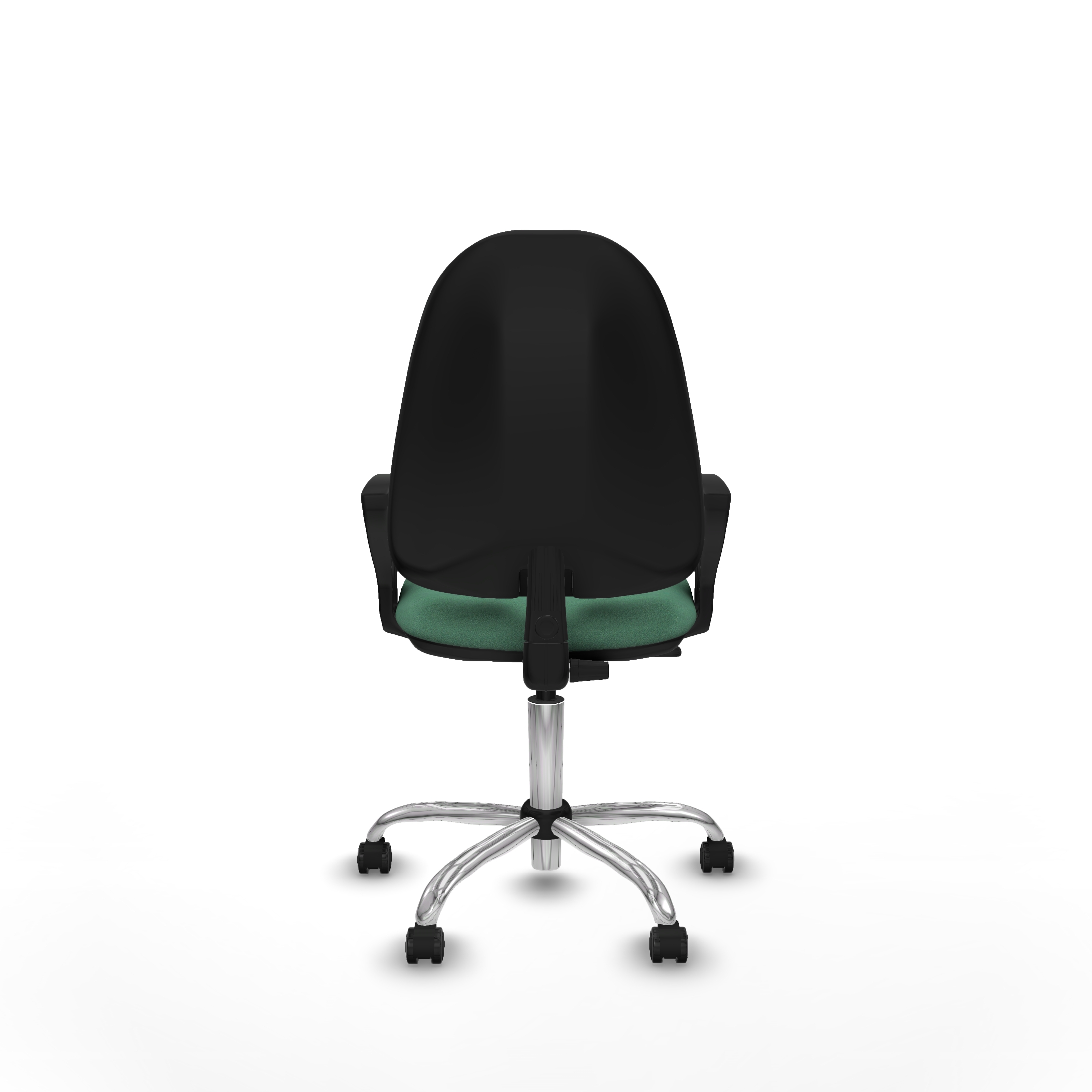Equipada con ruedas de nailon engomadas de 5 cm de diámetro, con eje interno y perno de acero de 11 mm, garantiza movilidad suave y duradera. La base metálica cromada de 5 radios y 60 cm de diámetro aporta estabilidad y un acabado moderno que se adapta a cualquier ambiente de trabajo.