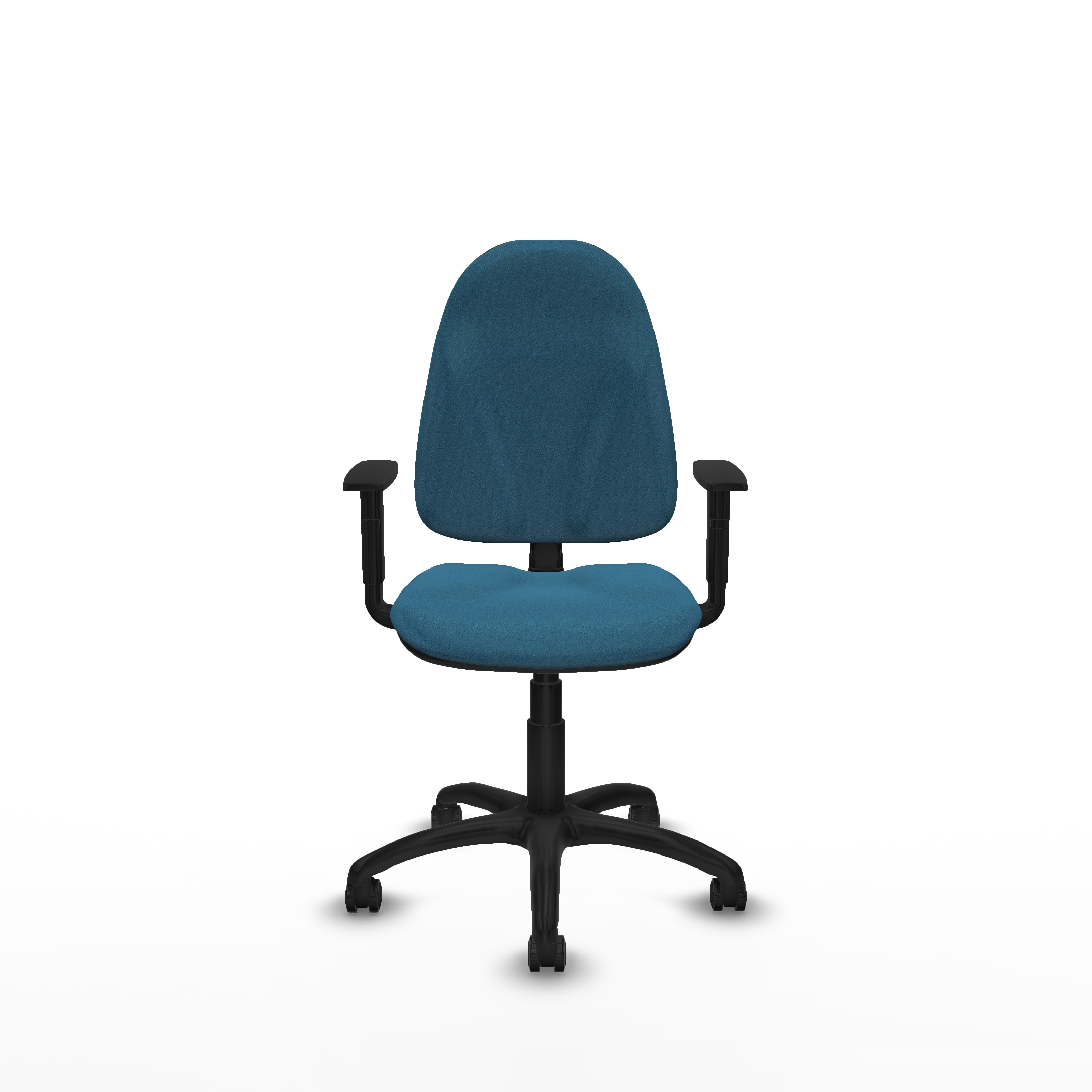 Esta silla de oficina con reposabrazos regulables en altura (de 62 a 69 cm) y asiento ajustable entre 45 y 59 cm se adapta perfectamente a diferentes usuarios y espacios. Su mecanismo giratorio y la regulación de altura del asiento facilitan una postura cómoda y dinámica.