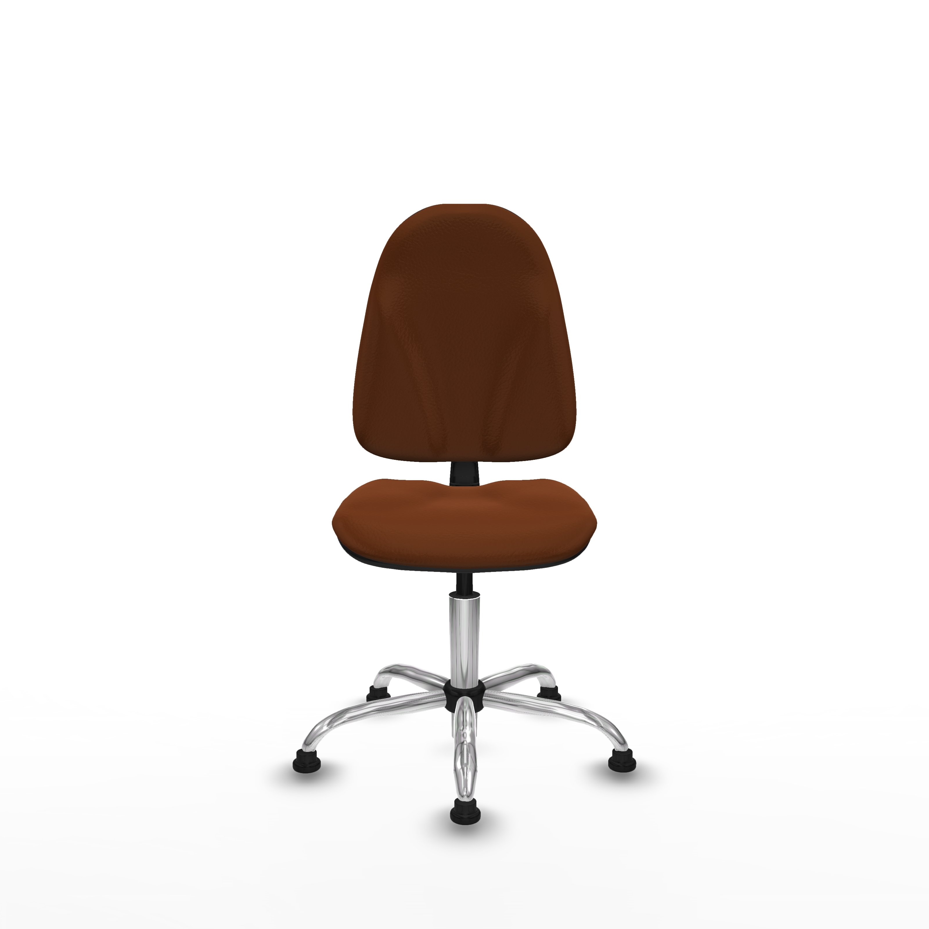 Esta silla escritorio sin ruedas regulable cuenta con ruedas de topes de nailon y perno de 11 mm de diámetro, que garantizan estabilidad y durabilidad. La base metálica cromada de 5 radios, con un diámetro de 60 cm, aporta robustez y un acabado elegante que se integra fácilmente en cualquier ambiente profesional.