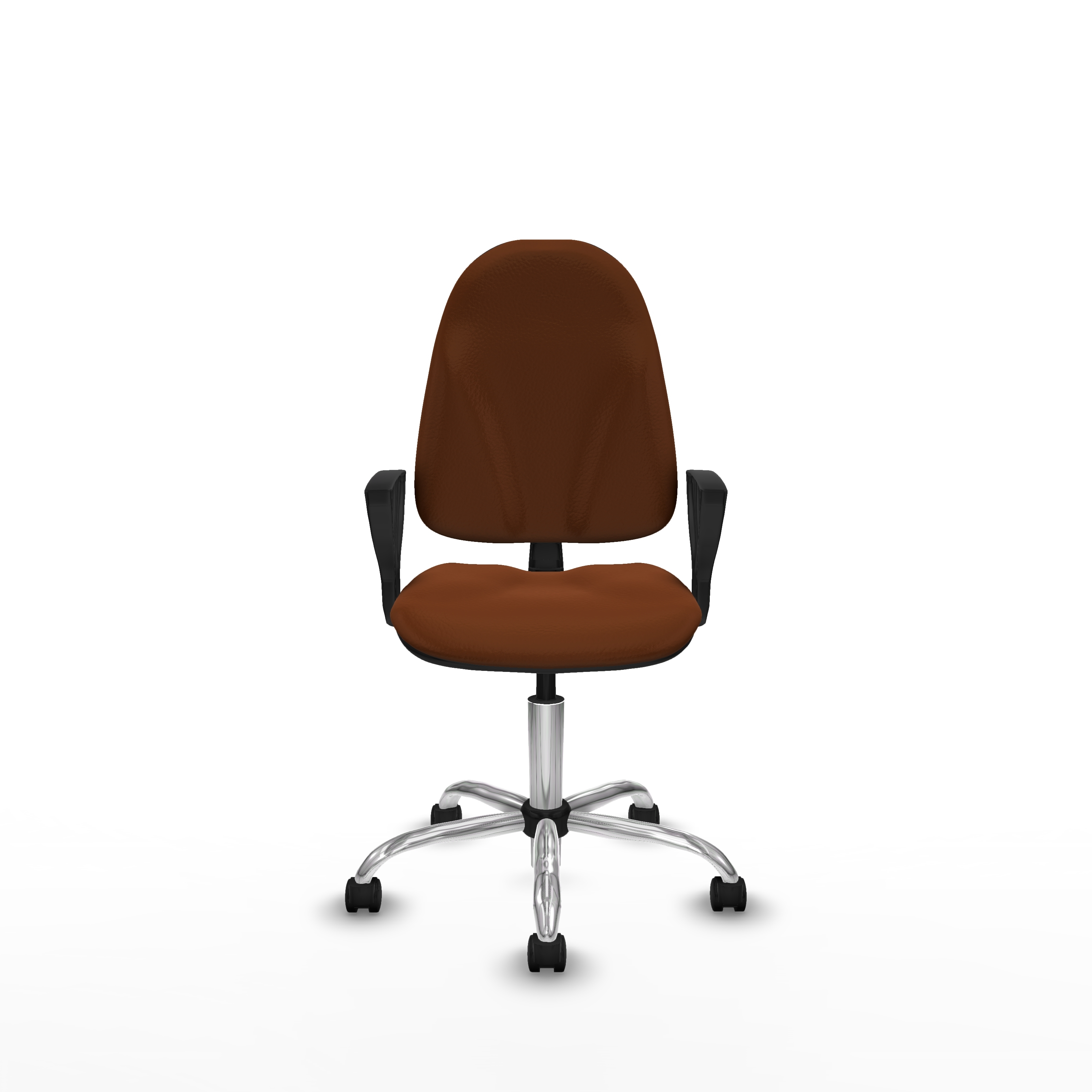 Algarra CP similpiel marrón brazos fijos base cromada ruedas nailon 50mm