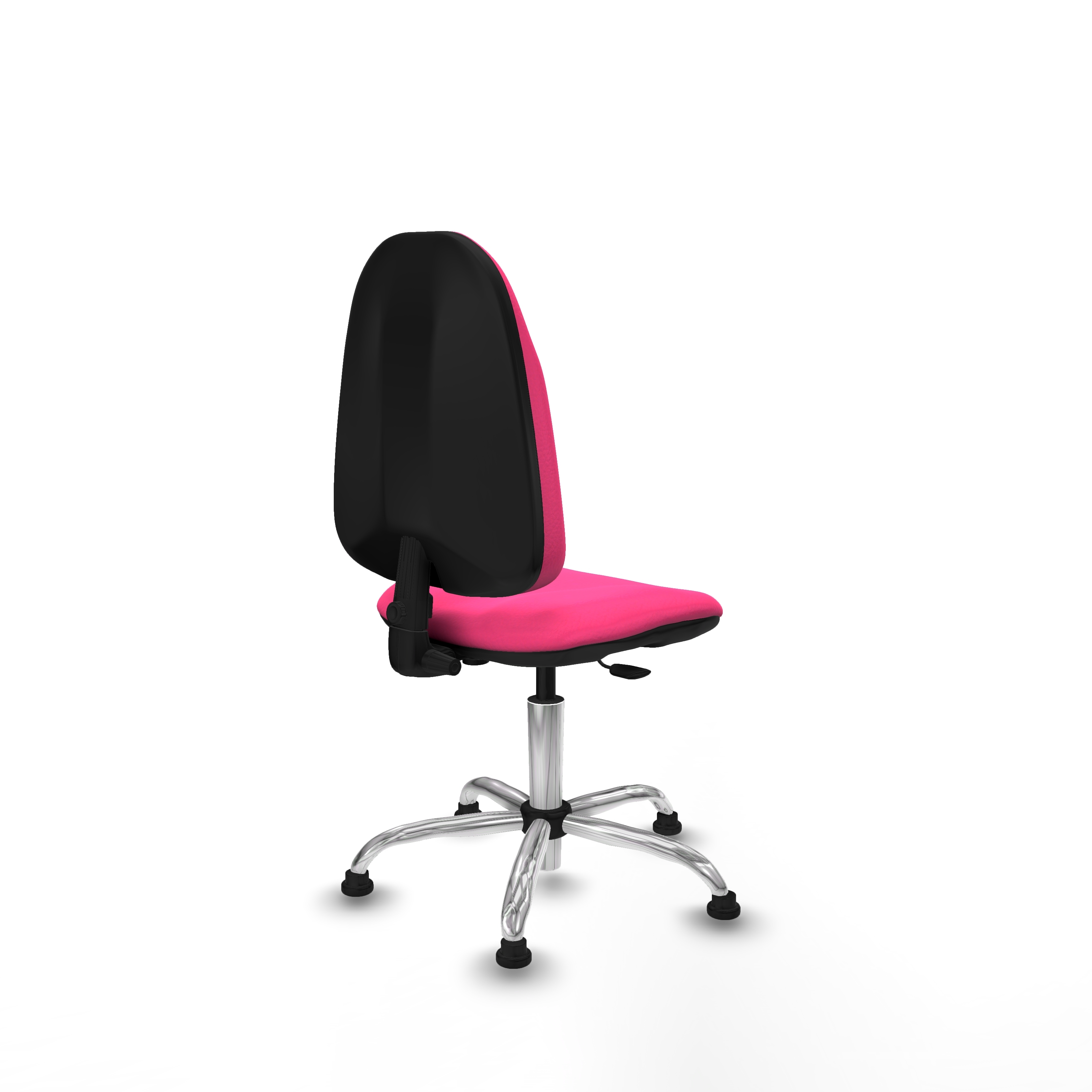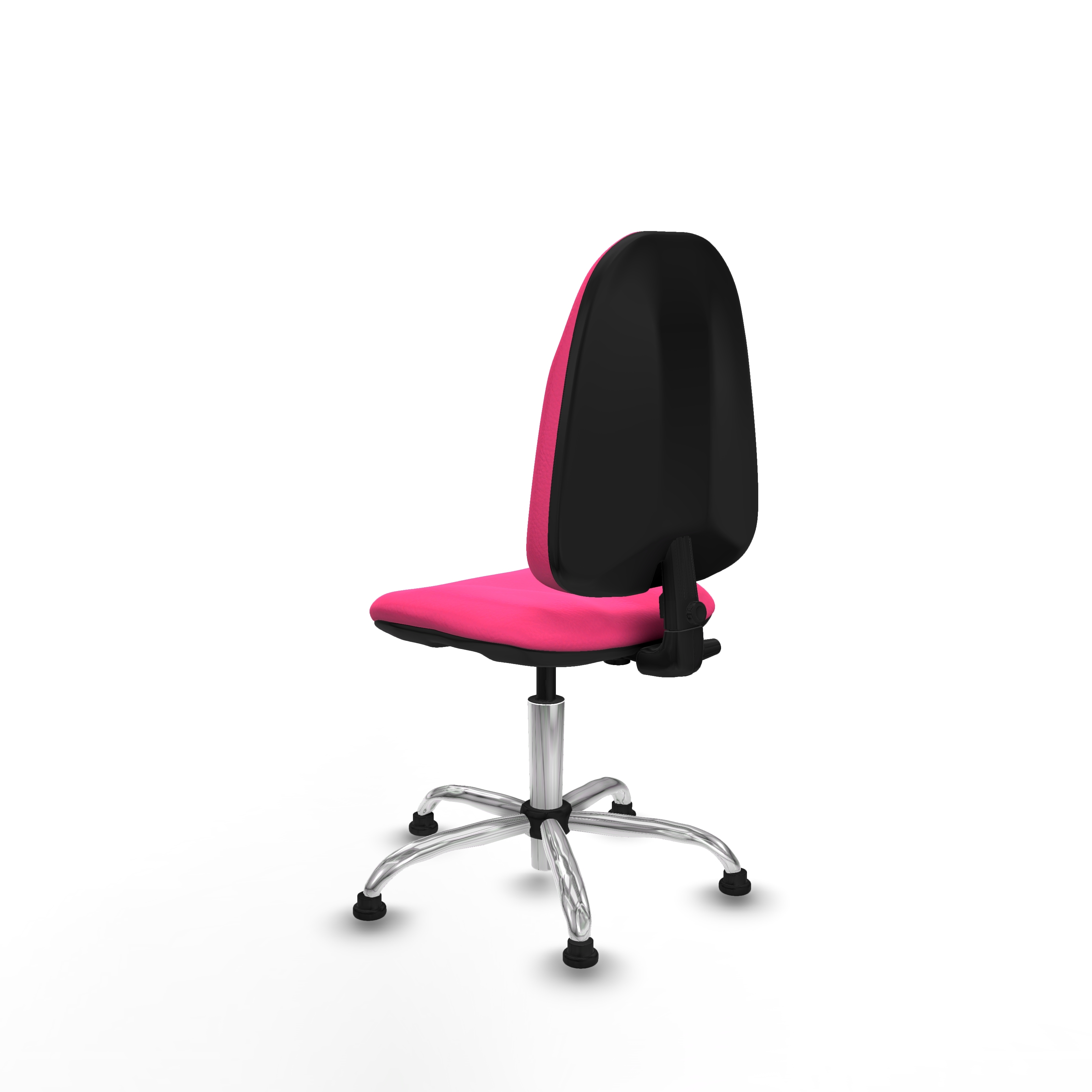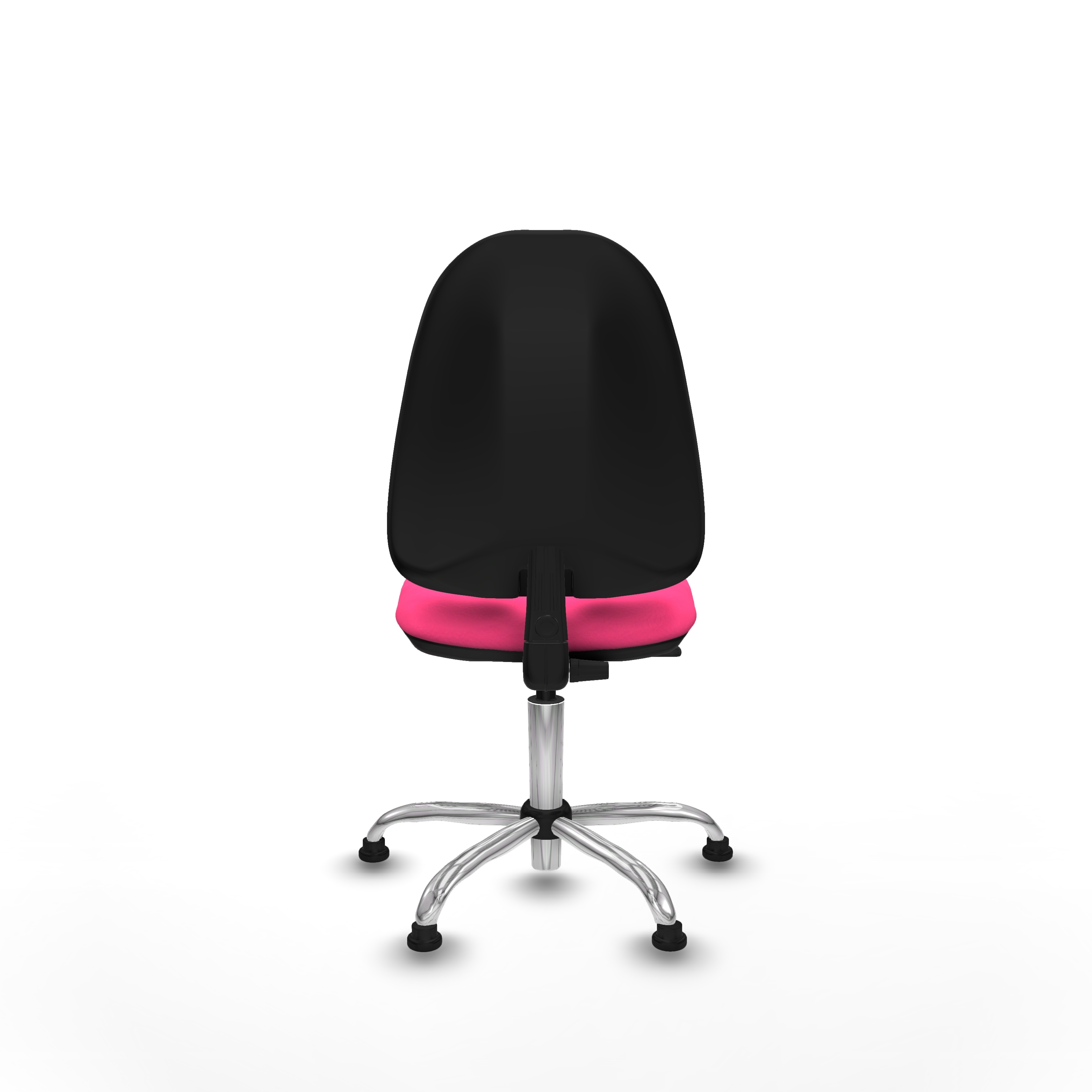 Equipada con ruedas tope de nailon y perno de 11 mm de diámetro, esta silla giratoria rosa permite una movilidad suave y segura. La base metálica cromada de 5 radios, con un diámetro de 60 cm, garantiza estabilidad y durabilidad.