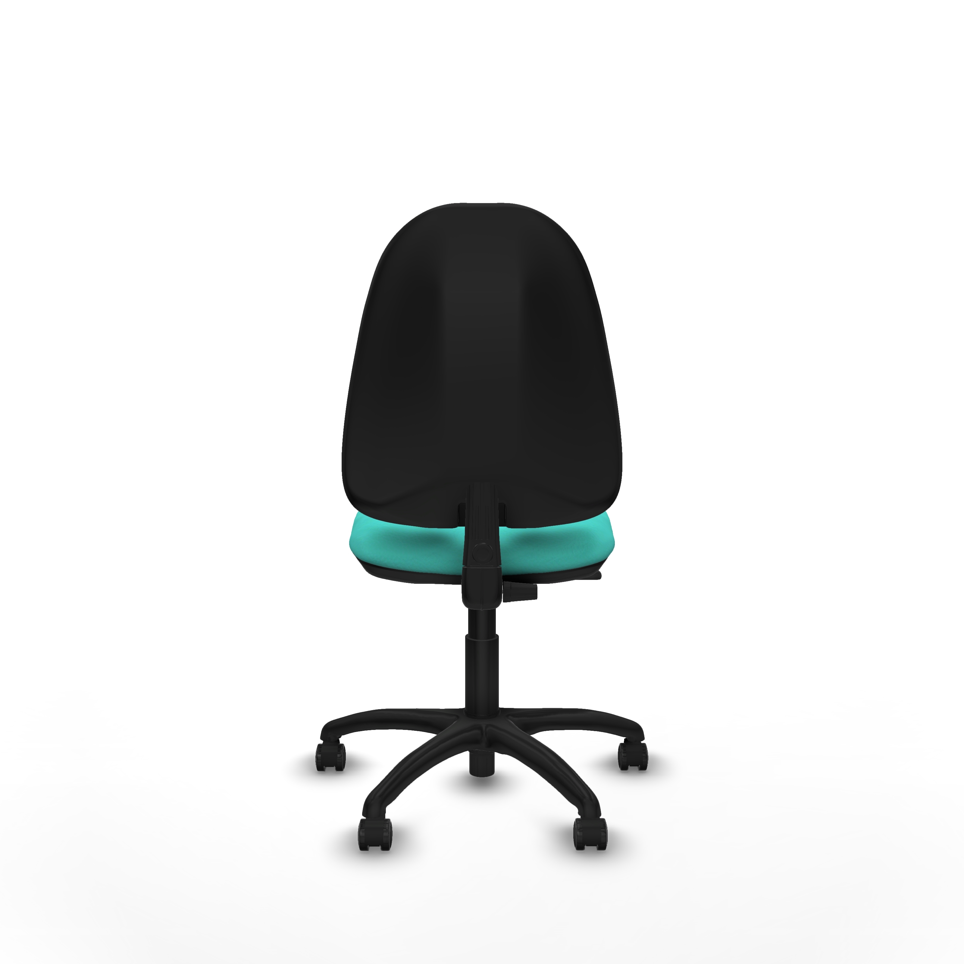 Equipada con ruedas de nailon autofrenantes de 50 mm de diámetro, con eje interno y perno de acero de 11 mm, garantiza movilidad segura y duradera. La base de poliamida cuenta con 5 radios y un diámetro de 60 cm, con un acabado negro que aporta resistencia y elegancia.