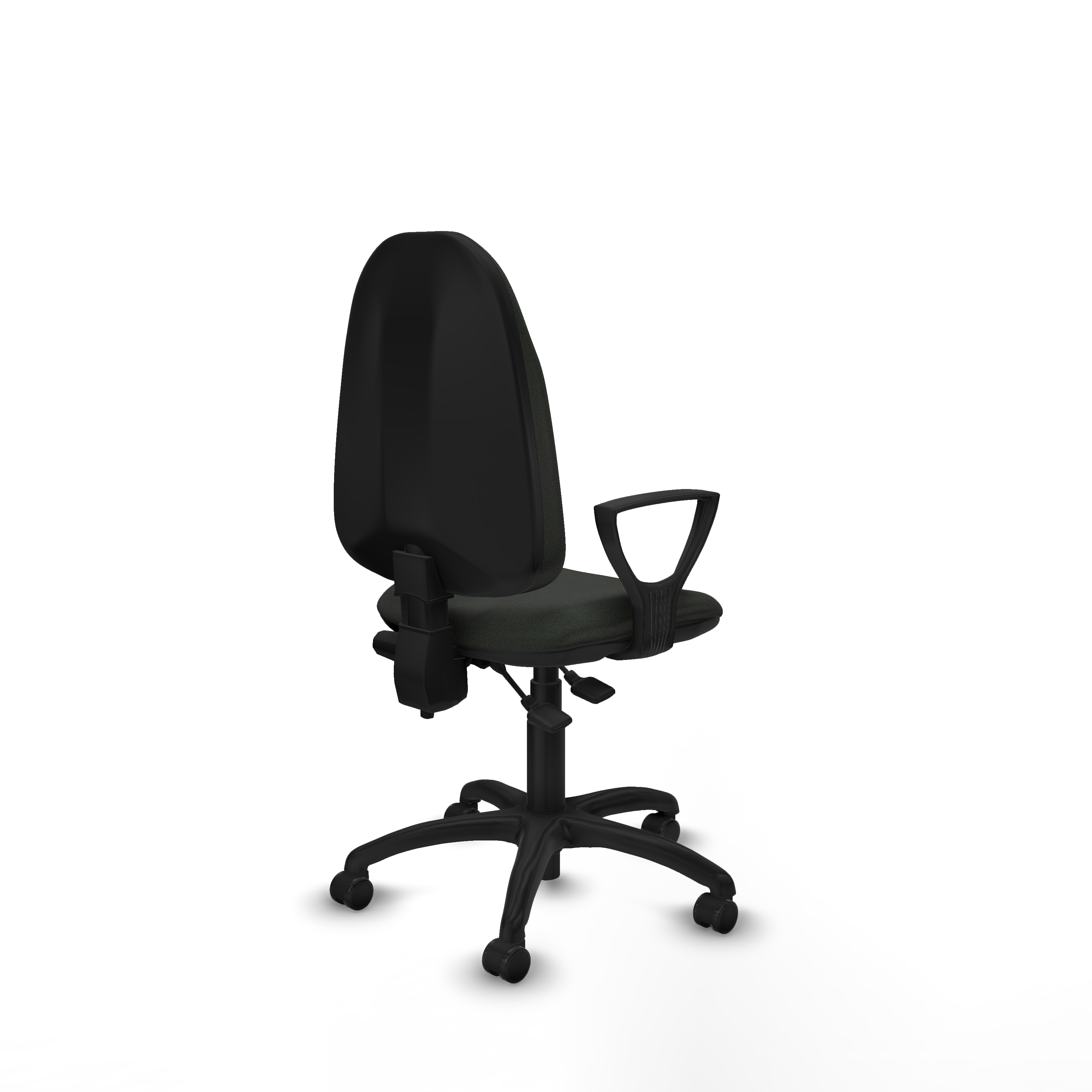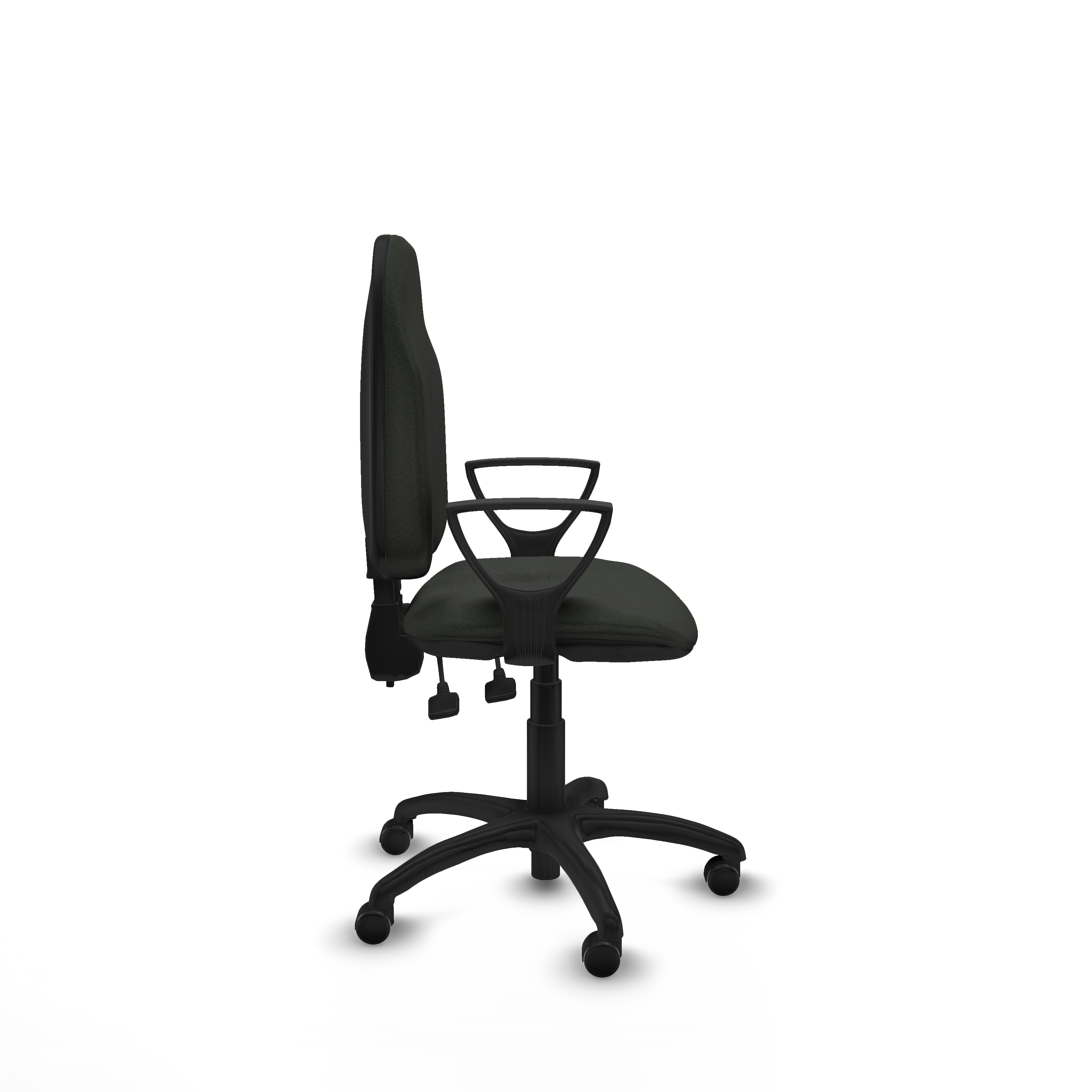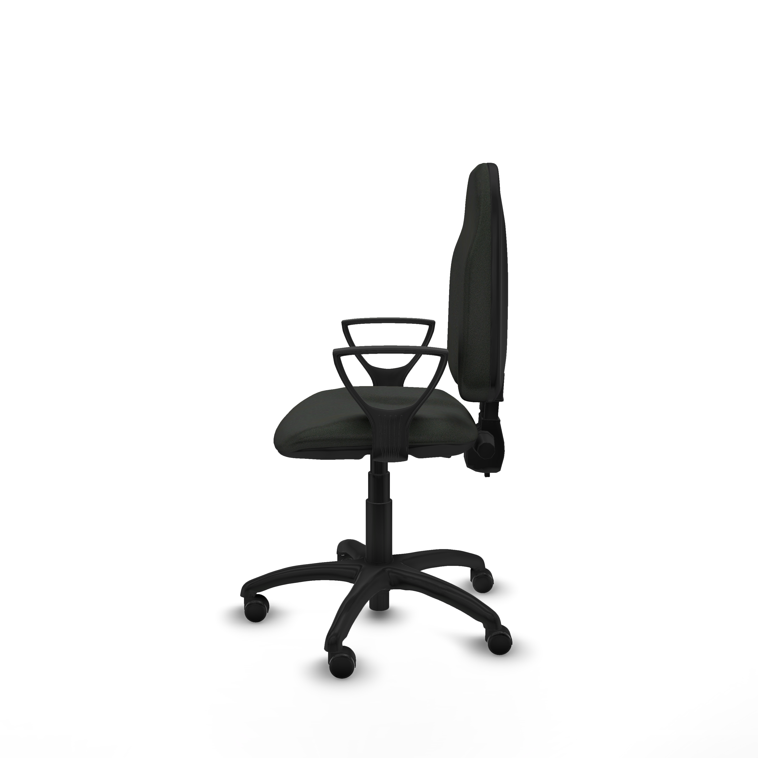 Los brazos fijos, ajustables en altura entre 65 y 78 cm, ofrecen soporte adicional sin sacrificar espacio, haciendo que esta silla de escritorio negra sea ideal para ambientes profesionales y espacios reducidos.