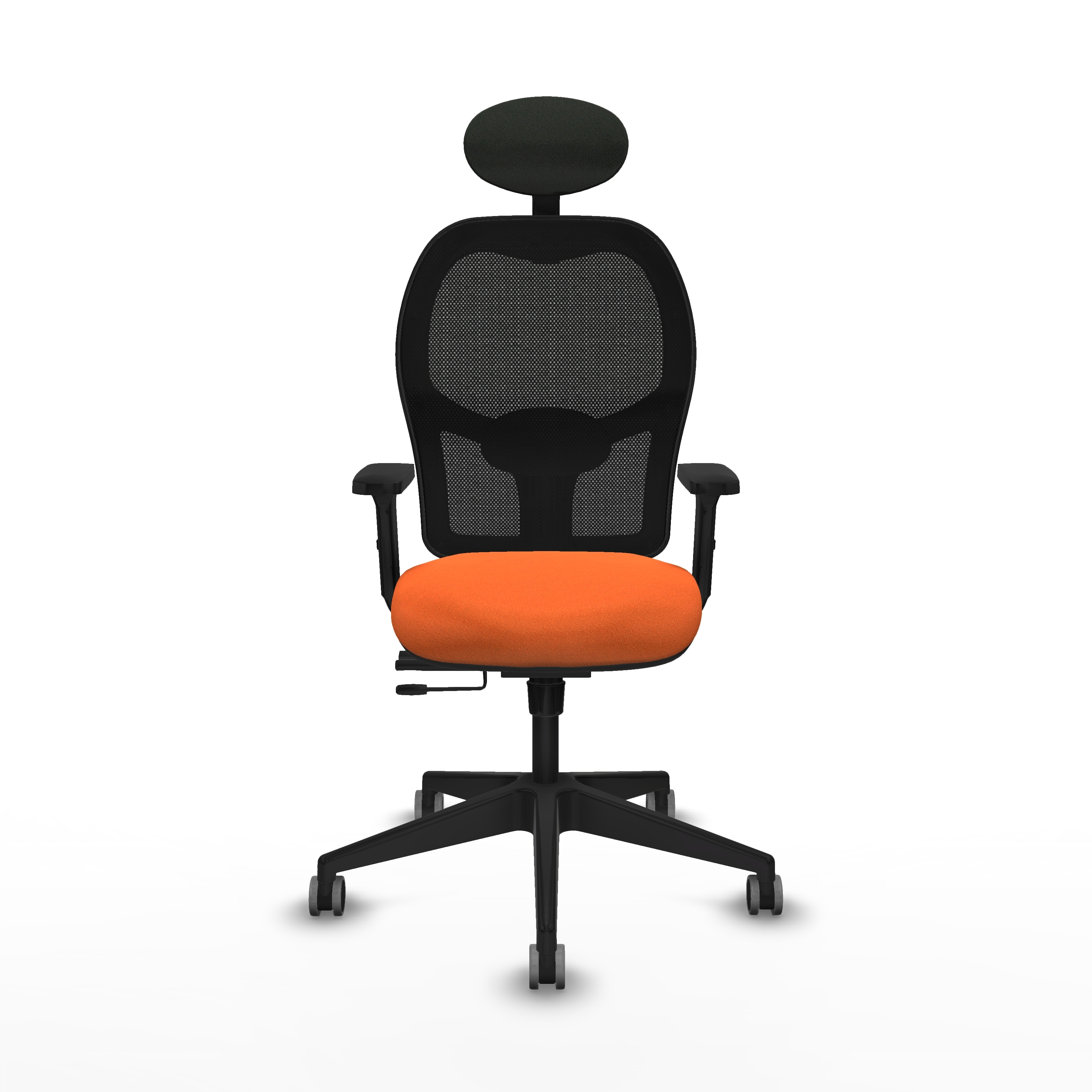 Alocén traslack malla negra bali naranja brazos 2D base piramidal cabecero fijo ruedas engomadas 65mm