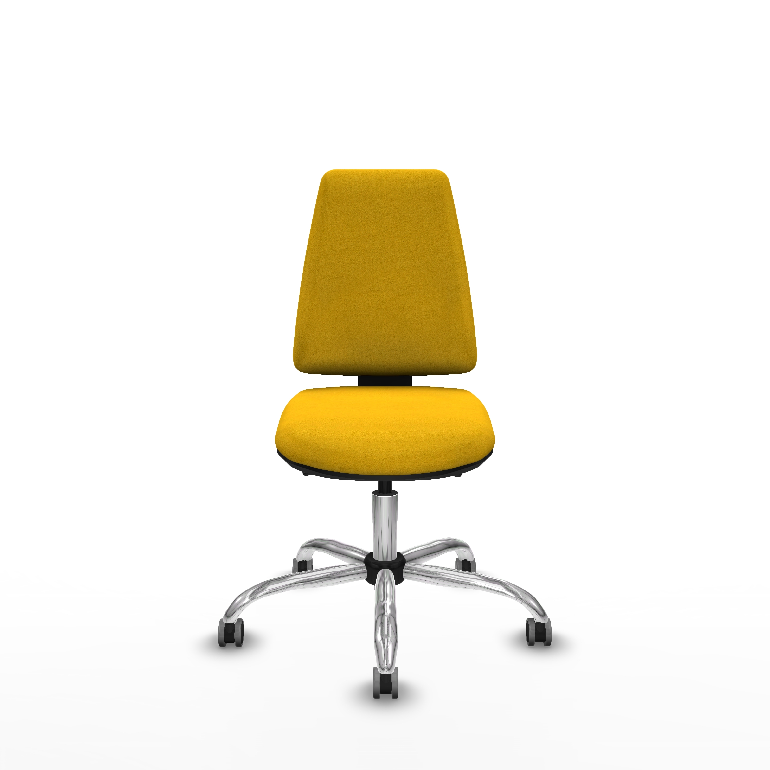 Equipada con ruedas de nailon engomadas de 6,5 cm de diámetro, con eje interno y perno de acero de 11 mm, garantiza movilidad suave y duradera. La base metálica cromada de 5 radios, con un diámetro de 60 cm, aporta estabilidad y un acabado elegante.