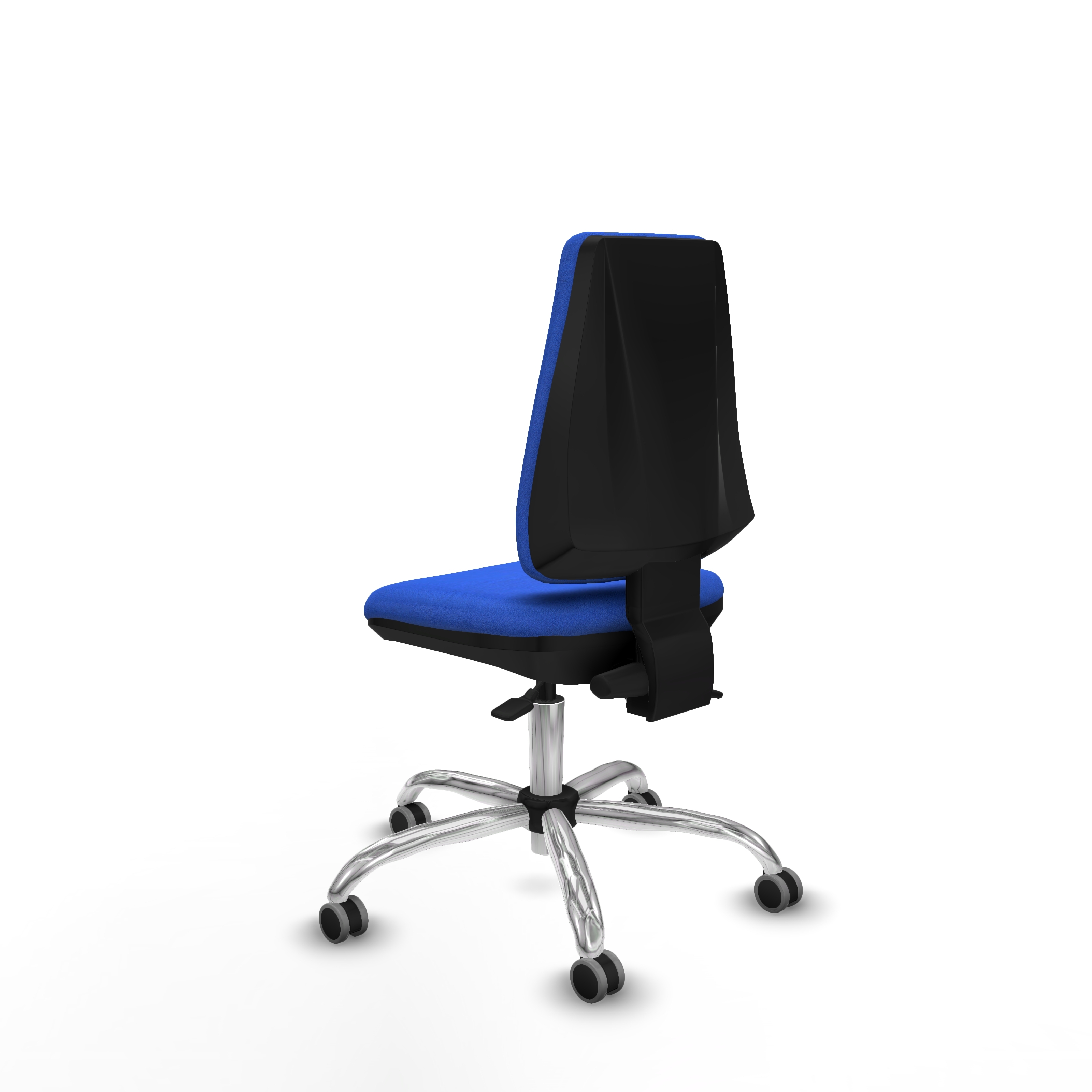 Equipada con ruedas de nailon engomadas de 6,5 cm de diámetro, con eje interno y perno de acero de 11 mm, esta silla escritorio con ruedas garantiza movilidad suave y duradera en cualquier superficie. Su base metálica cromada de 5 radios y 60 cm de diámetro aporta estabilidad y un diseño moderno que se adapta a cualquier espacio de oficina.