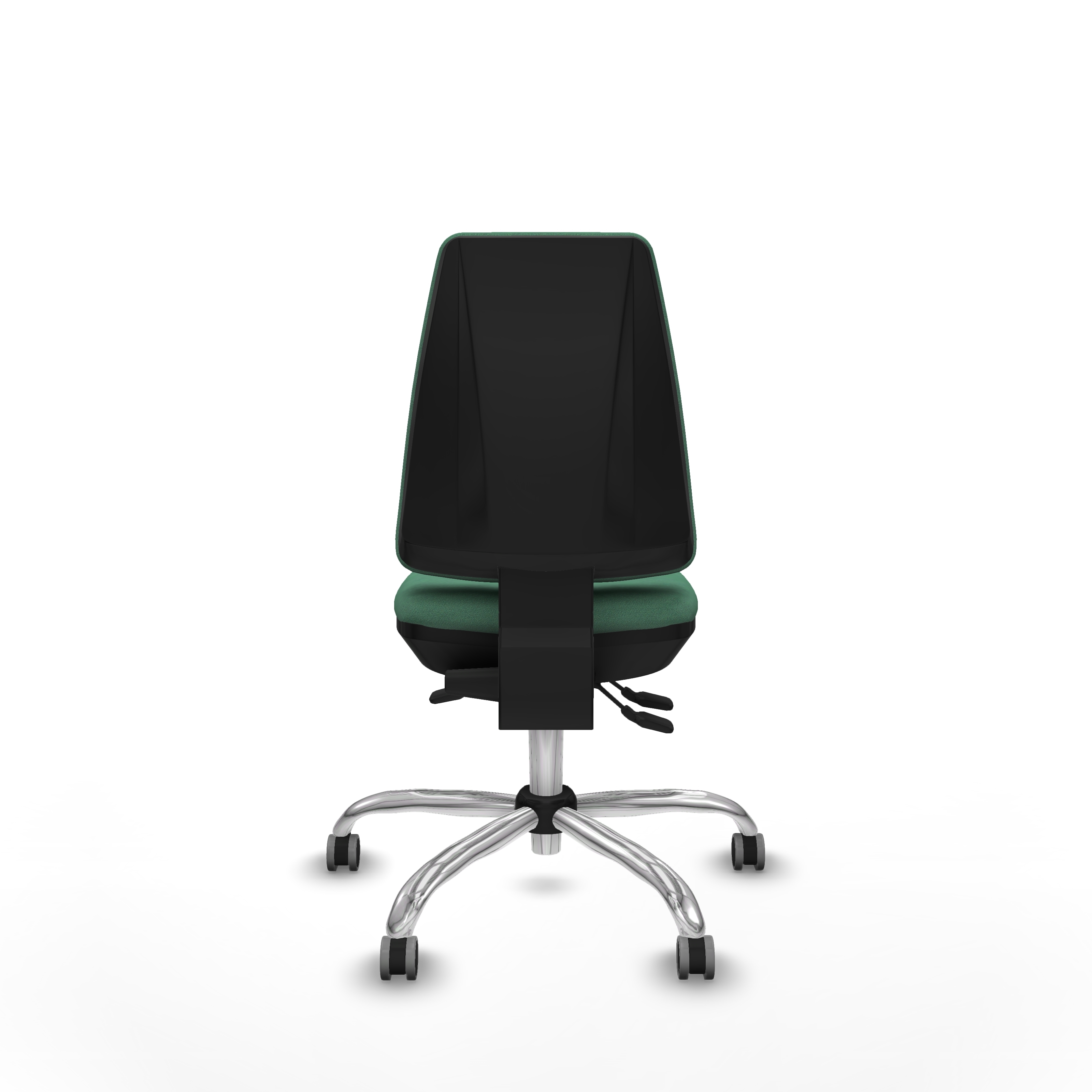 La base metálica cromada de 5 radios, con un diámetro de 60 cm, aporta estabilidad y un acabado elegante que se adapta a ambientes profesionales. El mecanismo asíncrono permite la regulación independiente del asiento y respaldo, facilitando ajustes personalizados para mayor confort.