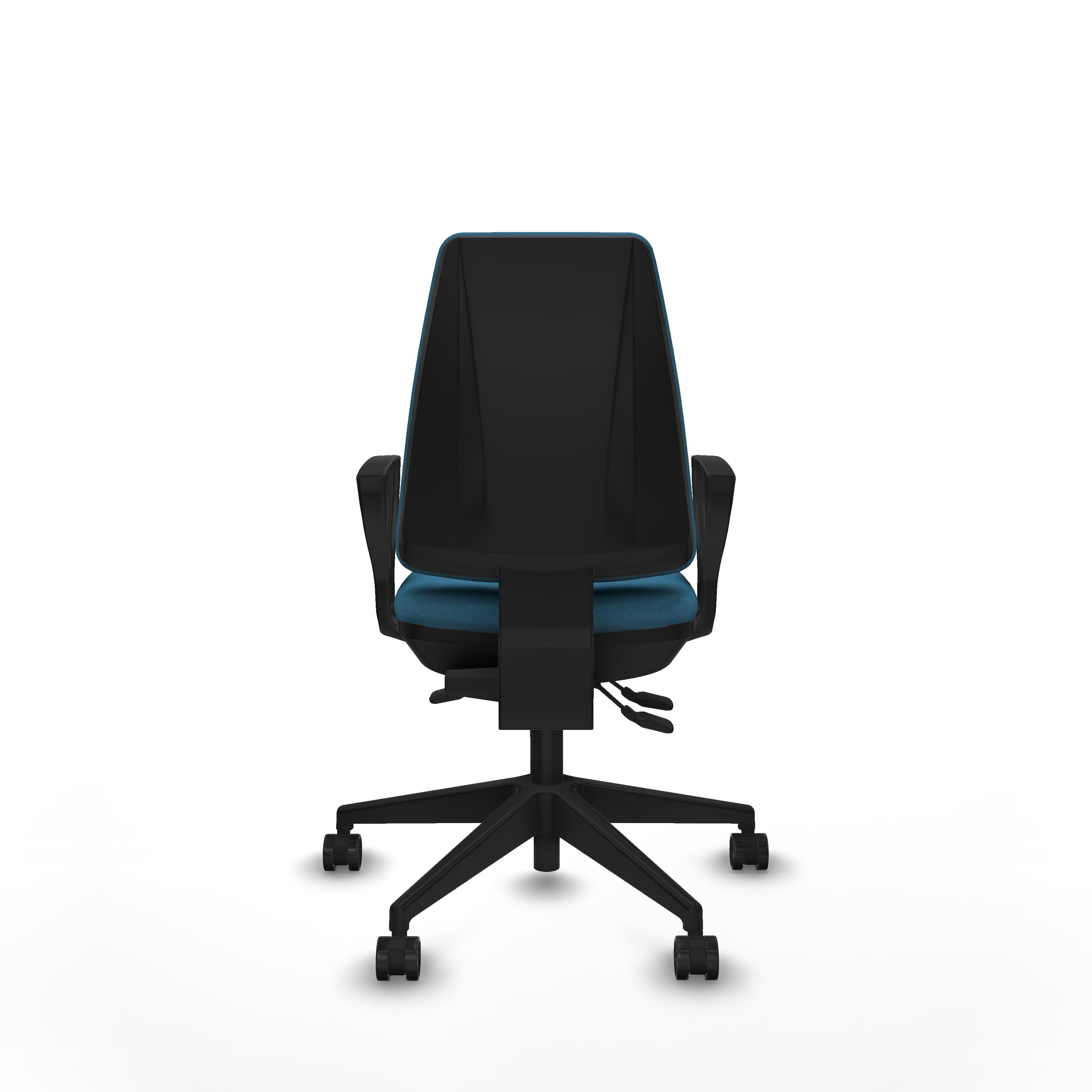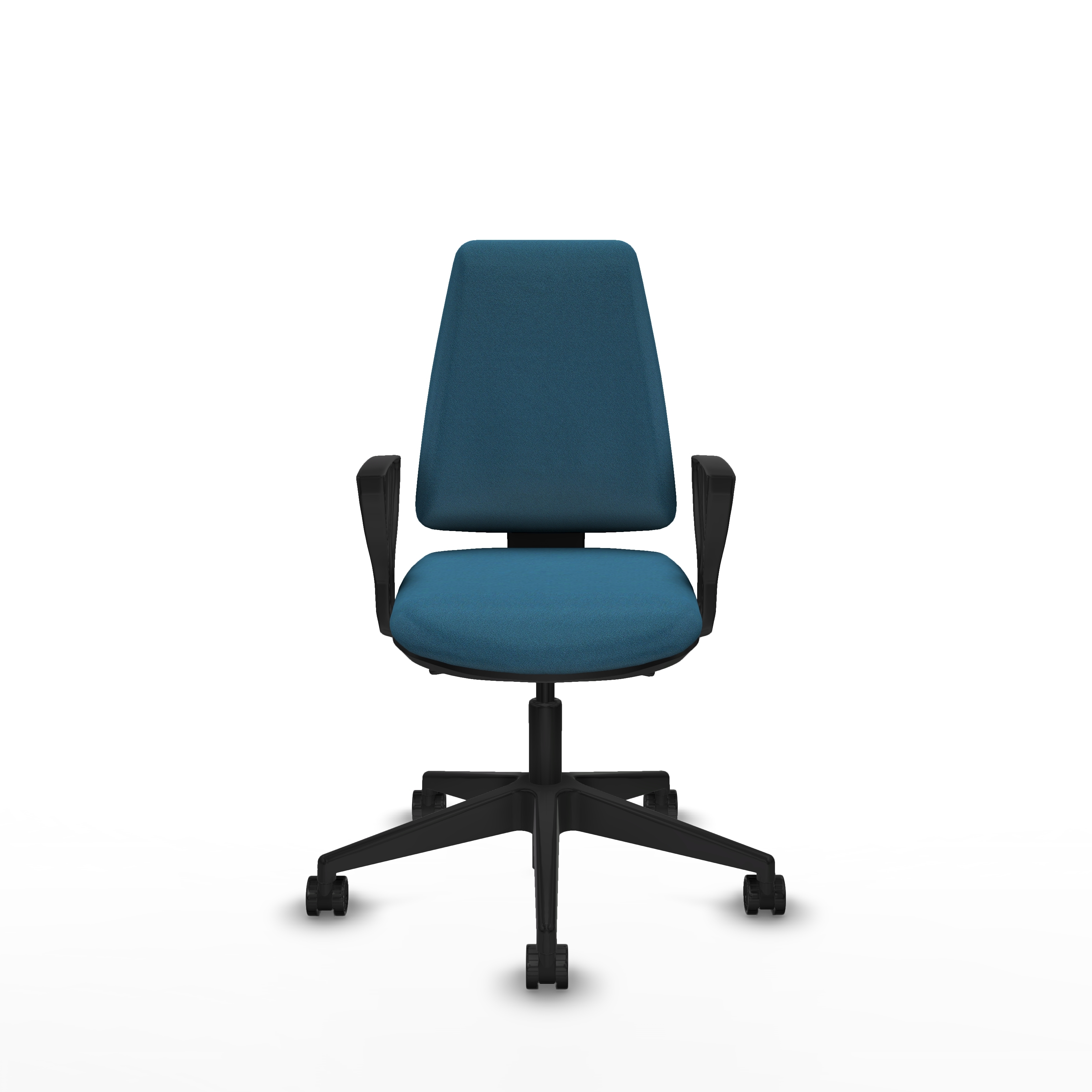 Los brazos fijos complementan el diseño, proporcionando soporte sin sacrificar espacio, lo que hace esta silla especialmente adecuada para espacios pequeños o ambientes de trabajo dinámicos.
