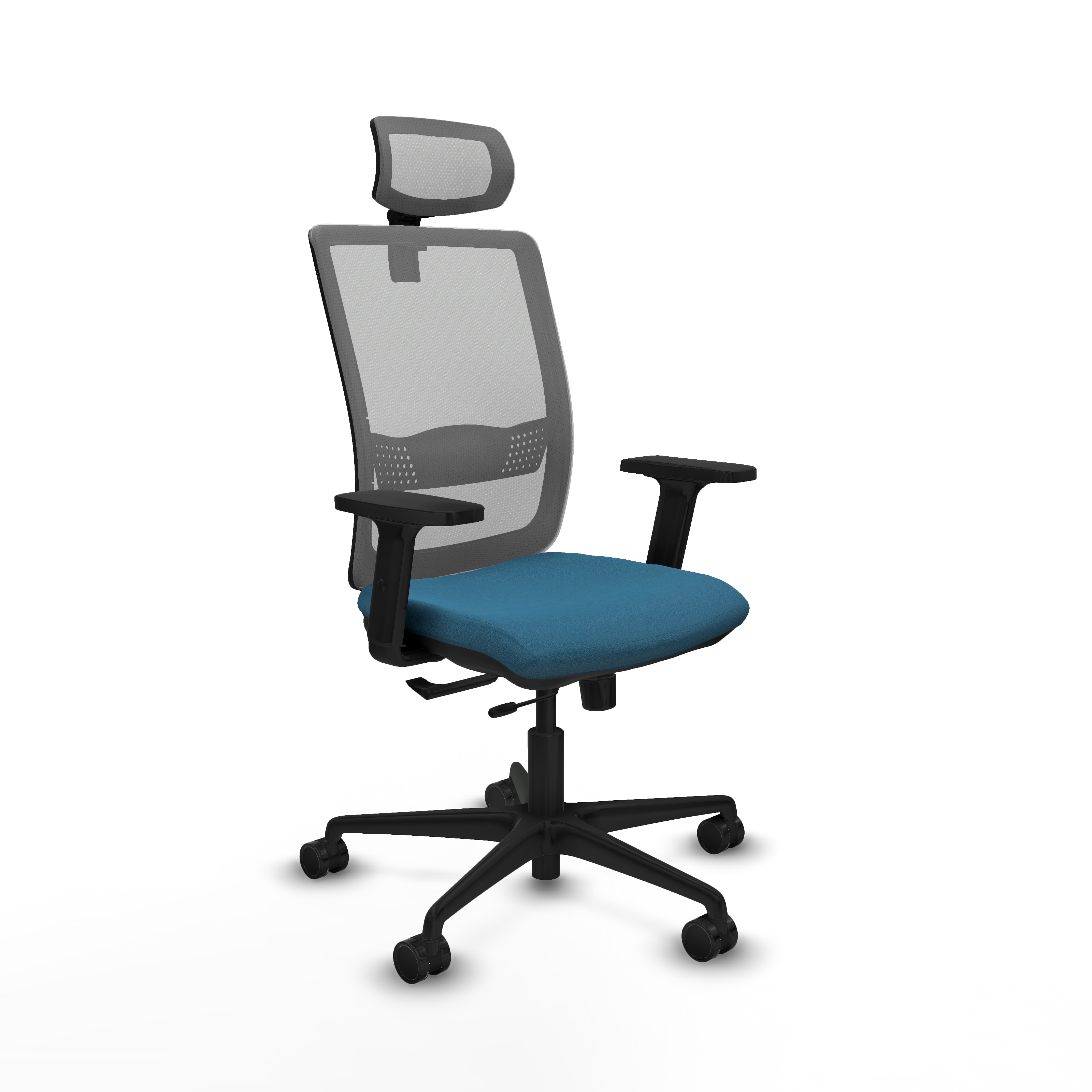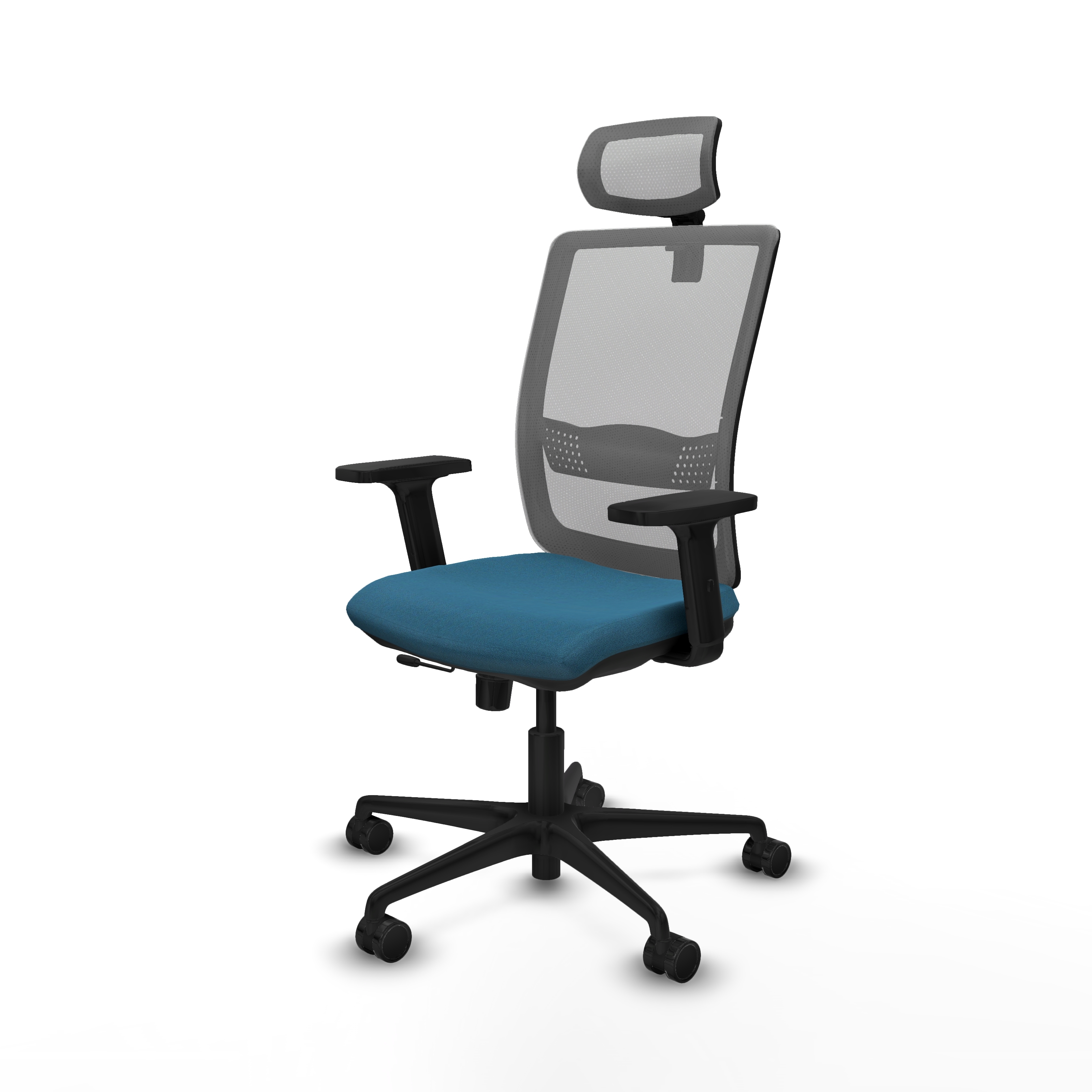 El cabecero 2D y el apoyo lumbar 1D proporcionan un soporte adicional para el cuello y la zona lumbar, ayudando a mantener una postura adecuada durante el trabajo. El respaldo fijo asegura estabilidad y confort, mientras que la espuma inyectada de alta calidad, con una densidad de 50 Kg/m3, se adapta a la forma del cuerpo, ofreciendo un descanso óptimo.