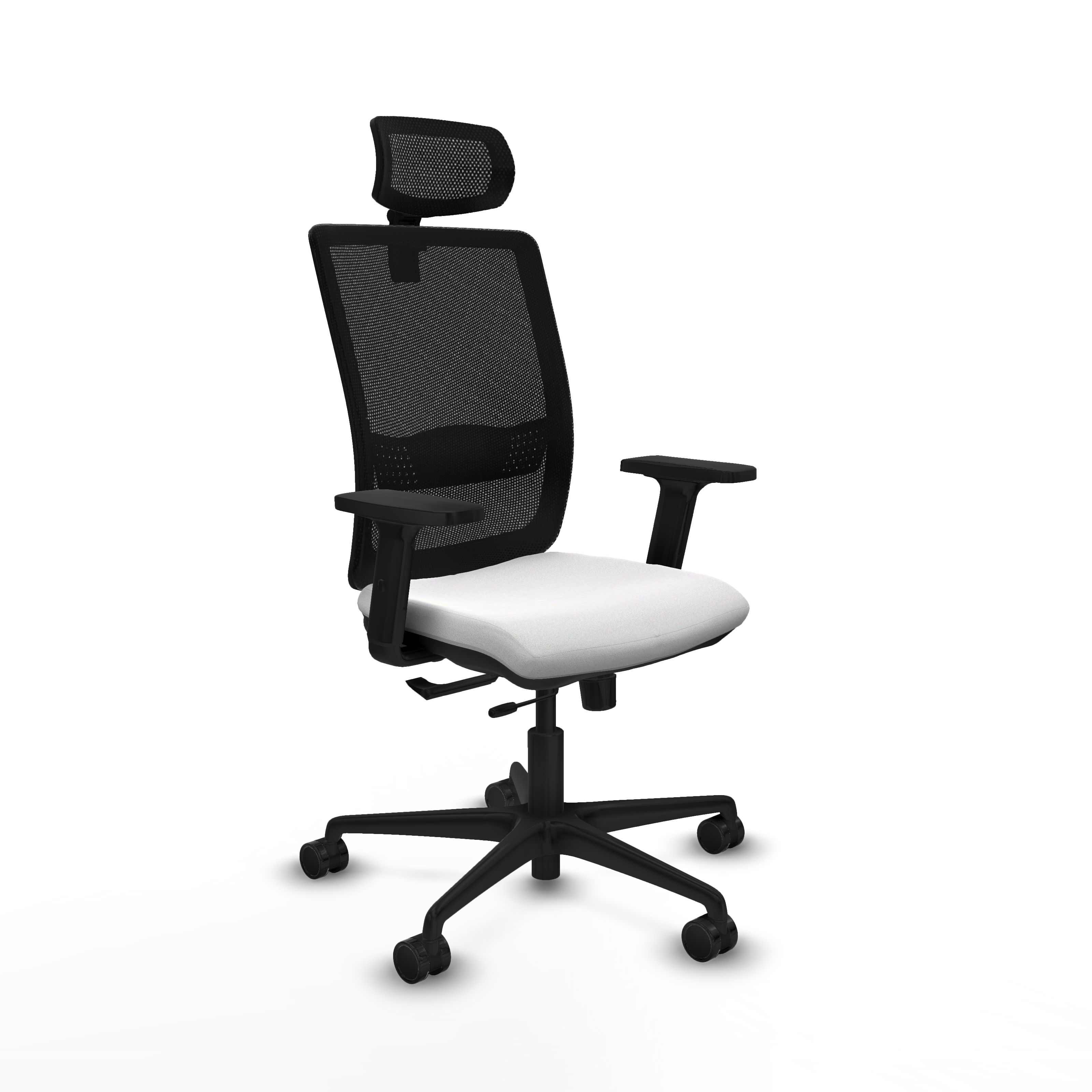 Haches traslack malla negra bali blanco brazos 2D base nailon cabecero malla 2D ruedas 65mm nailon