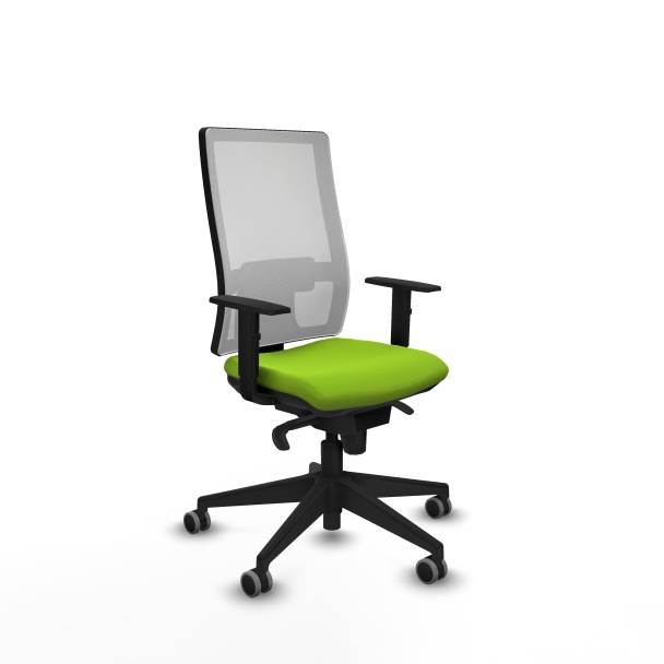 El mecanismo permite la regulación de la inclinación del respaldo y asiento, con fijación en 5 puntos, además de la regulación de la altura del asiento, ofreciendo un control total para adaptarse a diferentes posturas y tareas.