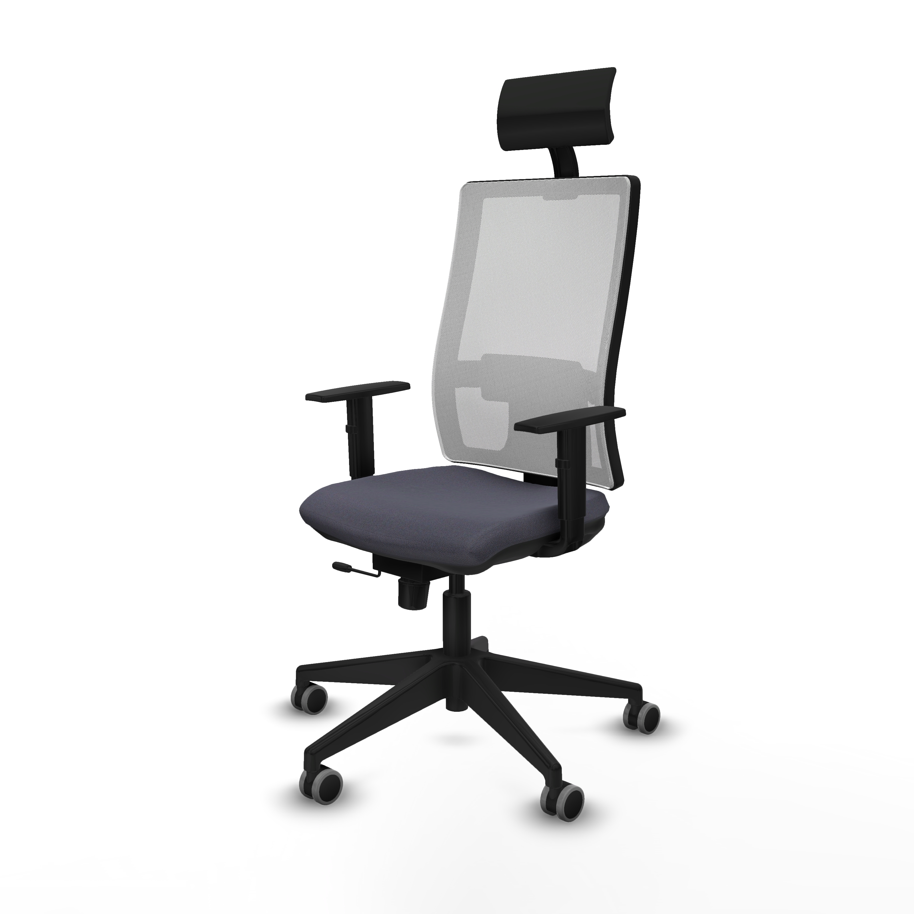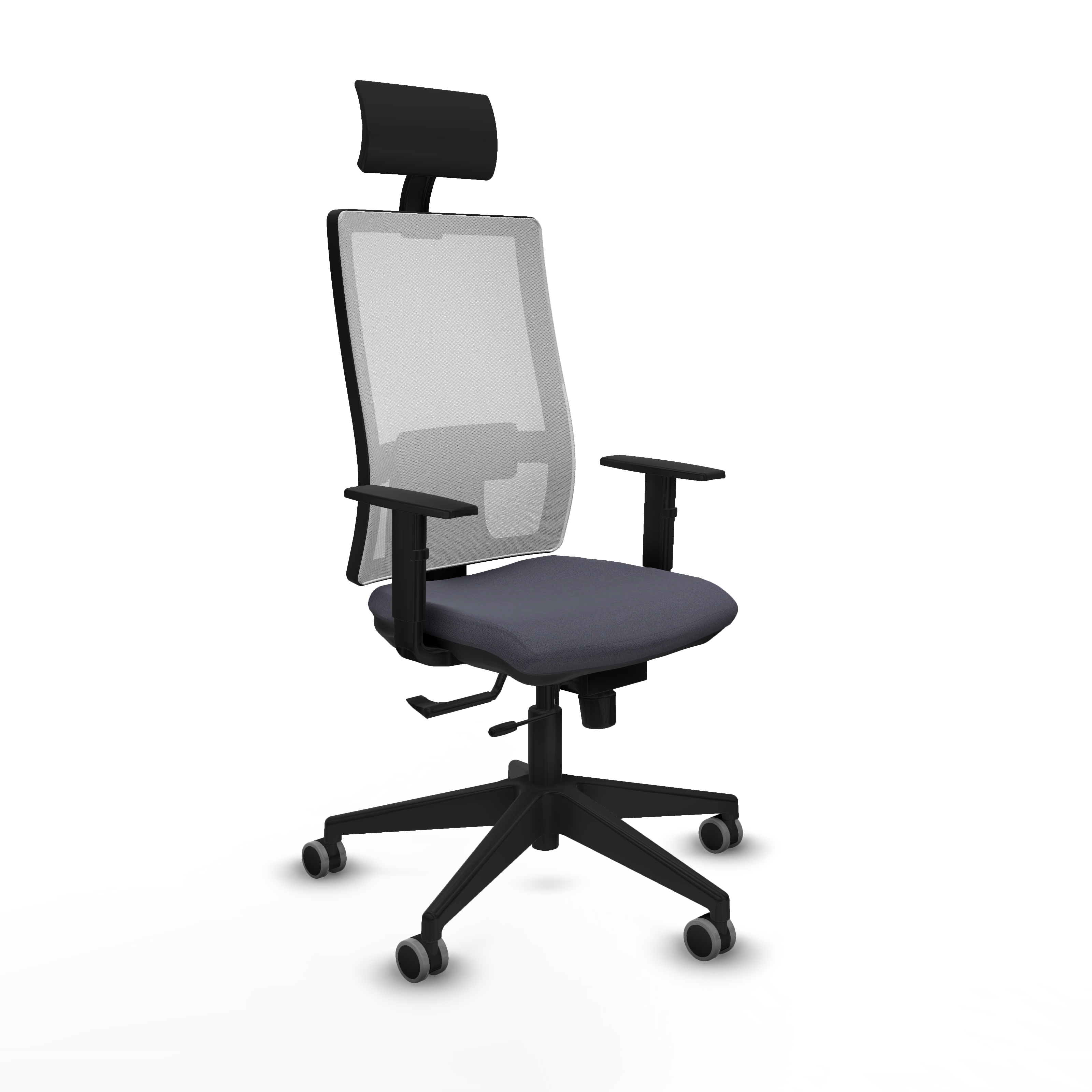 Horna traslack malla blanca bali gris oscuro brazos 1D base piramidal cabecero fijo ruedas 65mm engomadas